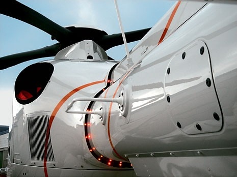 The encouraging growth figures for the civil aviation market were certainly a boost to the Hélicoptère project, entrusted to Gabriele Pezzini, the Italian designer who has for a number of years already been a consultant on the French company’s special projects. “To redesign it, I had to start by conducting a thorough study of a unique world, that of the helicopter, which is so dense with meanings and mechanisms,” he relates. “Next, I identified the parts that could be changed, because they did not interfere with the aircraft’s aeronautical functioning. Finally, I turned each technical restraint into a means of finding a fresh solution that would improve functionality.” The most important alteration concerned the landing skid, which was completely redesigned by Pezzini and particularly appreciated by the company’s staff. The skid’s new section is flat instead of round in the upper part, so as to facilitate boarding: a simple but effective device. The brief specified recognisability of the Hermès identity at a glance. The idea for a graphic feature to serve that purpose came from the customary woollen thread fastened to the cockpit’s nose to indicate which way the wind is blowing. An orange thread runs freely along the cockpit, from one side to the other, joining the words “l’Hélicoptère” and “par Hermès” to create a sort of signature ideally written with the thread of the firm’s famous “saddler’s stitch”. The orange colour of this logo and of the rotor is combined with the dark brown of the cockpit (ideal for reducing the reflections of light on glass) and stands out from the cream white chosen for the passenger compartment. Other small but important modifications to details affect handles, navigation lights housed vertically on the conjunction between the helicopter’s two bodies, and the tail rotor position lights.