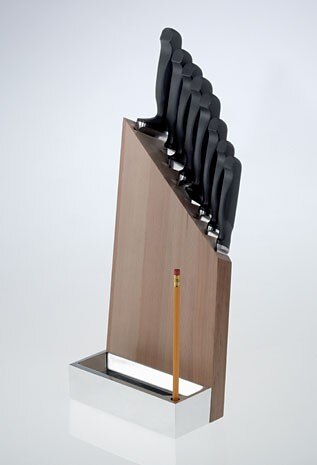 If then we add the perversion of wishing to handle diabolical kitchen utensils, such as razor-sharp knives, to the pleasurable risk of preparing any dish less humdrum than spaghetti with tomato and basil sauce, then it seems indispensable to triple the level of intelligence and reassemble the Alessi-Gozzi-Sapper trio, who recently set about integrating that same Cintura d’Orione series. Connoisseurs will already be acquainted with the first and third figures. But the second – who does not win Compasso d’Oro prizes or smile on the covers of Capital, and is not a Made-in-Italy icon – has always stayed out of the limelight and kept a distinctly Piedmontese low profile. To my mind, this gives him the air of a kind of guru, sitting cross-legged on the hilltops around Lake Orta ready to send secret dispatches of chemico-mathematical formulas to Alberto Alessi, as he wrestles below with the stubborn Sapper and his indisputable certainties.