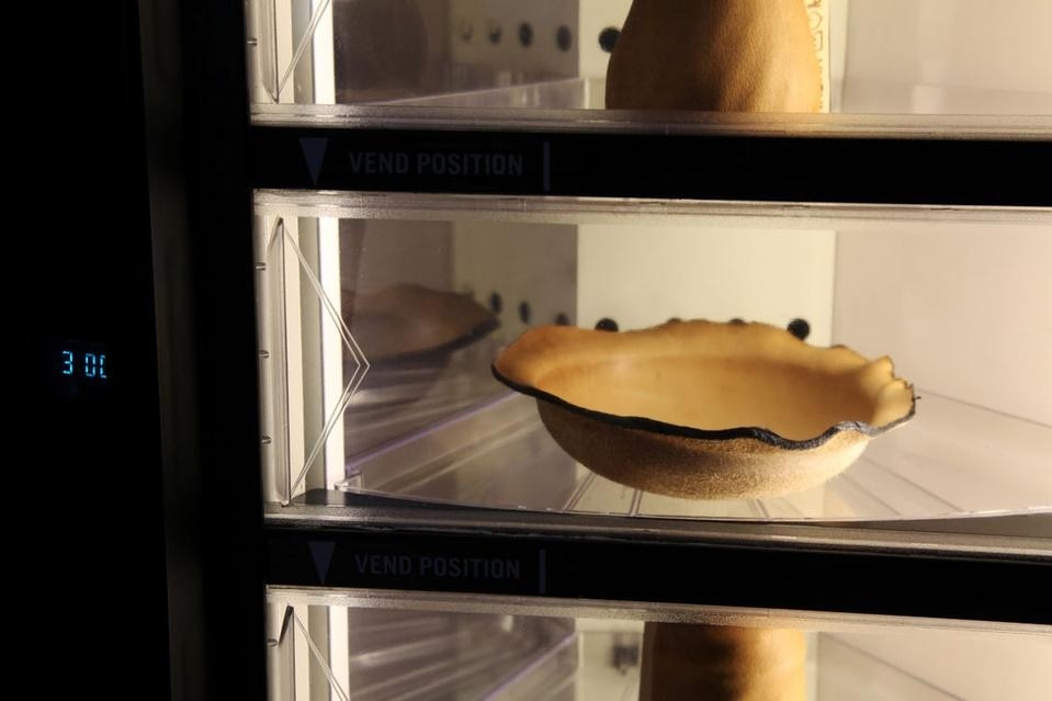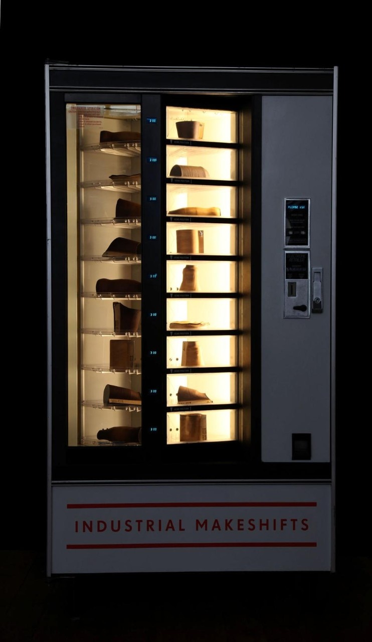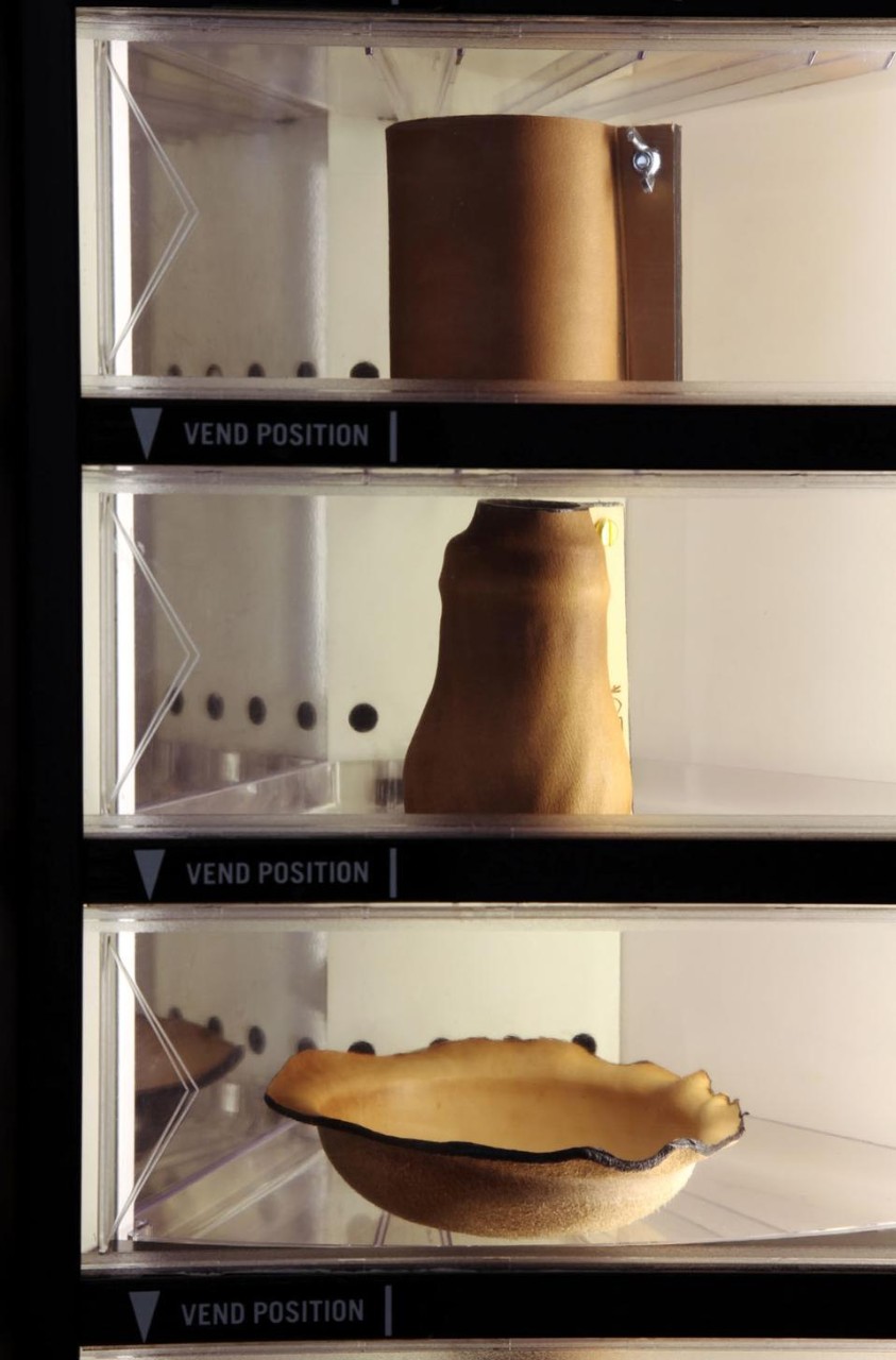 The result is a series of 400 "unique" vases (i.e. all different from each other) produced with the medieval technique of cuir bouilli (boiled leather), used in the Middle Ages to make armour and already adopted by Hasan at last year's Furniture Fair for the performances of Craft Punk, a show organised by Design Miami. In another original choice, the vases are sold through a coin-operated vending machine at discount-store prices: £3 (3.5 Euro) each. This alone is enough to trigger debate but Hasan does not stop there.