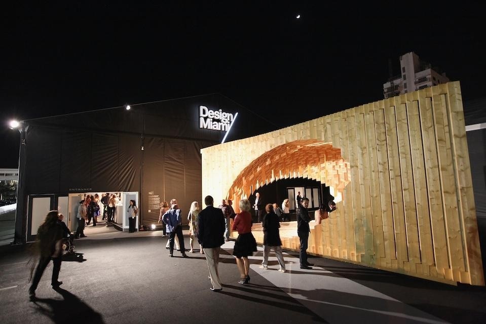 The fair has since left the Design District, to occupy a site in Miami Beach adjacent to Art Basel. David Adjaye, who was awarded the stately title of 2011 Designer of the Year by Design Miami this September, used the commission that comes with the award to construct a pavilion at the entrance to the fair. The structure, named Genesis, is a triangular shelter, with an ovoidal interior, made of standard wooden planks that are digitally cut. The process of digital cutting, making every piece slightly different, with total precision, created a womb-like interior out of standard wood forms.