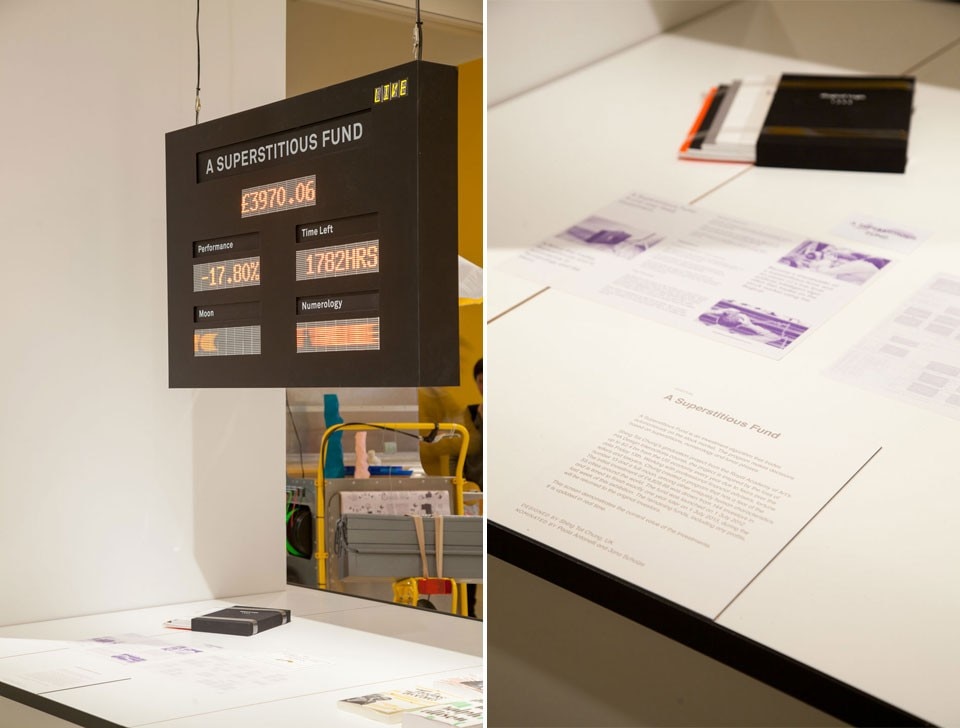 Designs of the Year 2013, installation view at the Design Museum, London. Detail of Shing Tat Chung's A Superstitious Fund. Photo by Luke Hayes