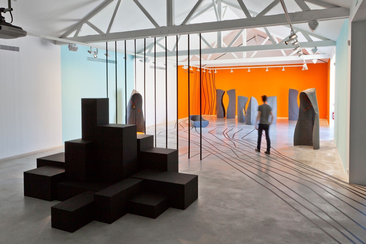 Who are these almost identical “characters” in transit through this zone impregnated with utopian and timeless signs? The furniture collection is called Permanents and conjures up the habits and rituals of an imaginary utopian community. Sheets of felt have been folded to produce structures designed to envelop the body. Every piece fits a single purpose and is designed for relaxation, seating or coming together.