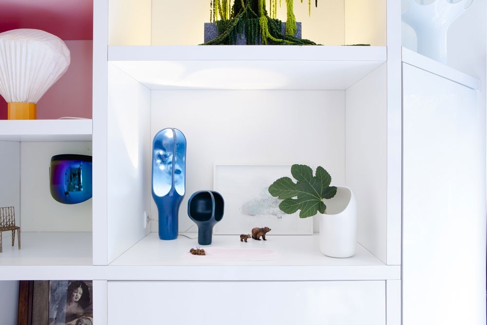 The Parade vase by Jean-Baptiste Fastrez organises and articulates blown glass parts and a wooden spindle. They are fastened together by nylon industrial wing nuts. To be suspended or placed on a piece of furniture, the Parade vase forms a bunch of spherical or oblong containers and expresses in its own right the bases of a work statement: combine industrial and craft techniques and update the outdated industrial ideal, “an object for all,” for a more adapted contemporary ideal, “an object for everyone.” The research studies for this project were conducted at the CIRVA during the 7th edition of the Design Parade festival at Villa Noailles, Hyères (France), in 2012. The Parade vase is available in 3 colours.