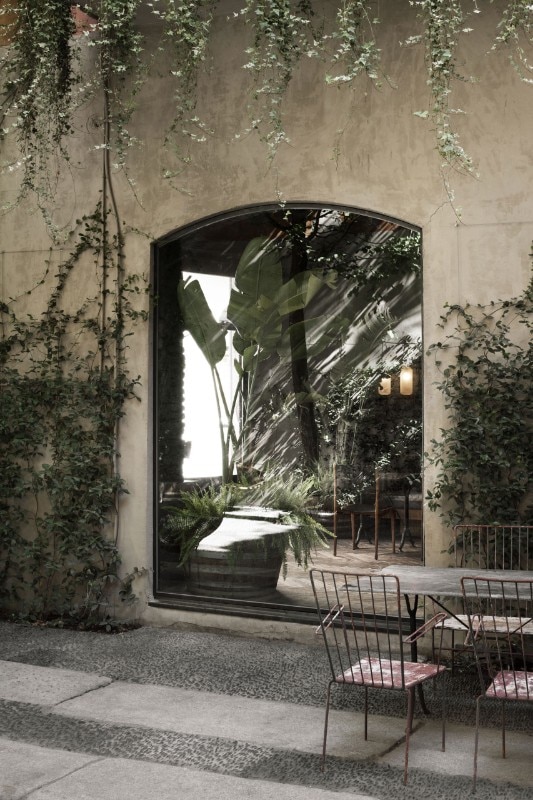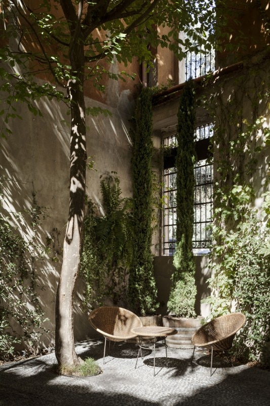 SIX projects is set up around a courtyard, a combination of typical Milanese elements and exotic accents of a riad. The intimate ‘secret’ spot is located behind a large doorway on via Scaldasole, dotted with elements of tropical vegetation. Balconies overlook the patio and large open arches, from the sixteenth century building, bring to mind its monastery past-life. It was born by an idea of entrepreneur Mauro Orlandelli who worked together with art director Samuele Savio, architects David Lopez Quincoces and Fanny Bauer Grung, musician Sergio Carnevale and landscapist Irene Cuzzaniti.