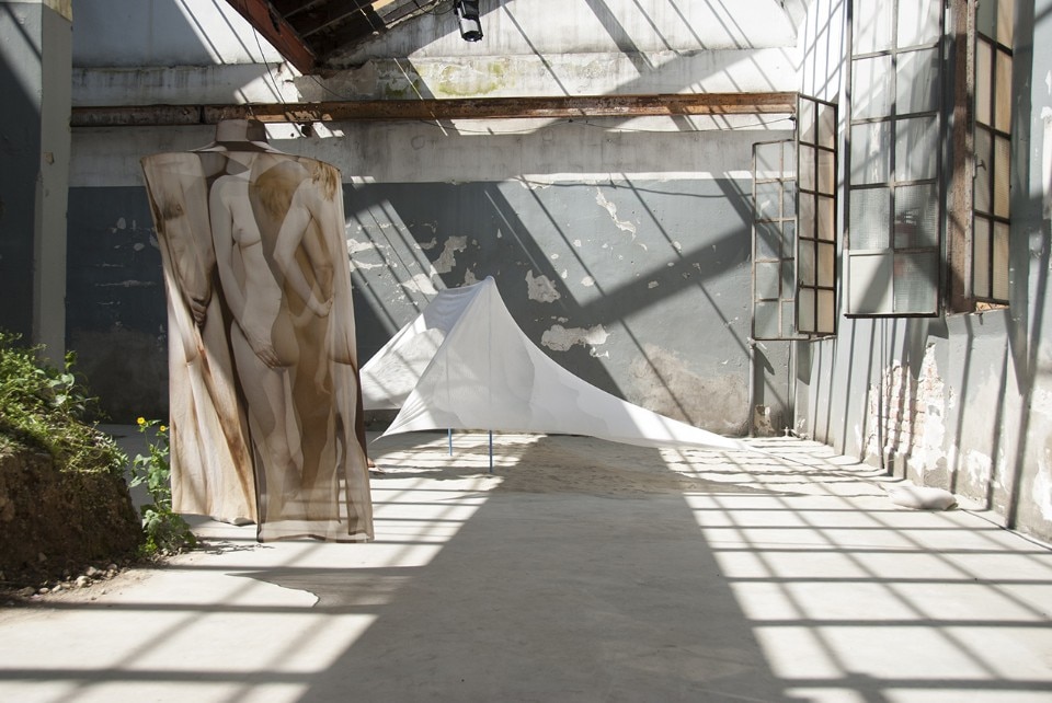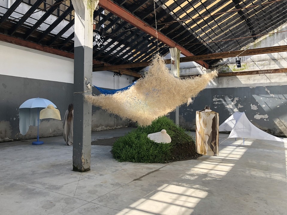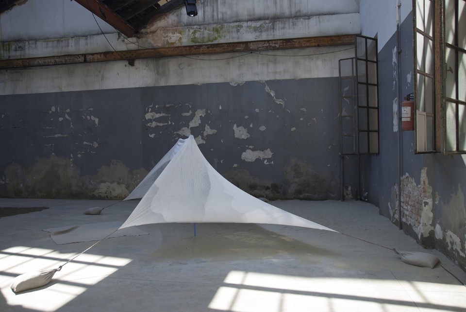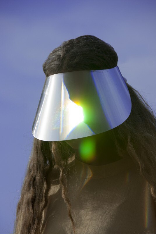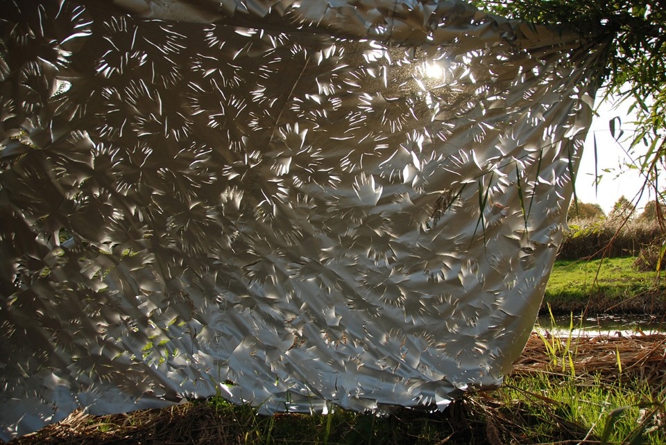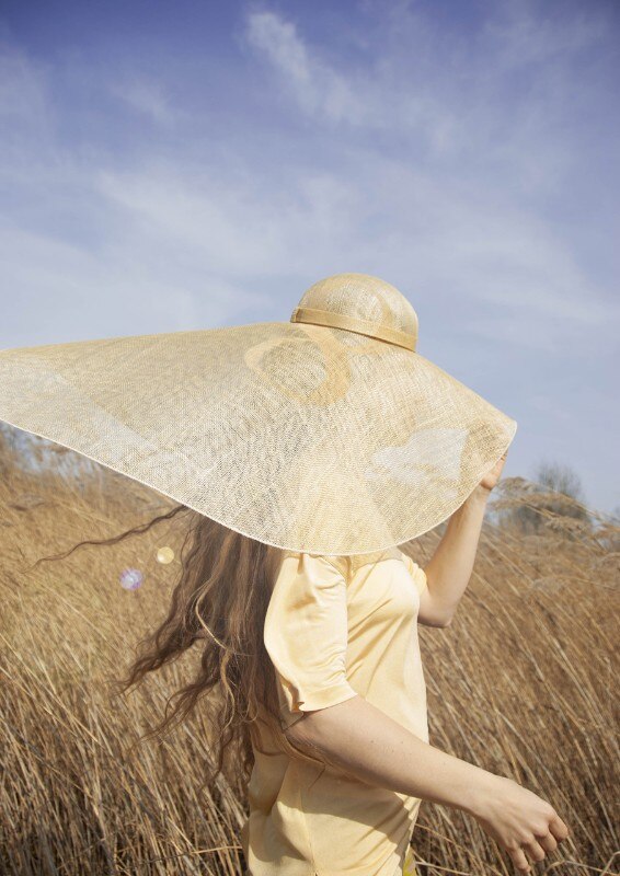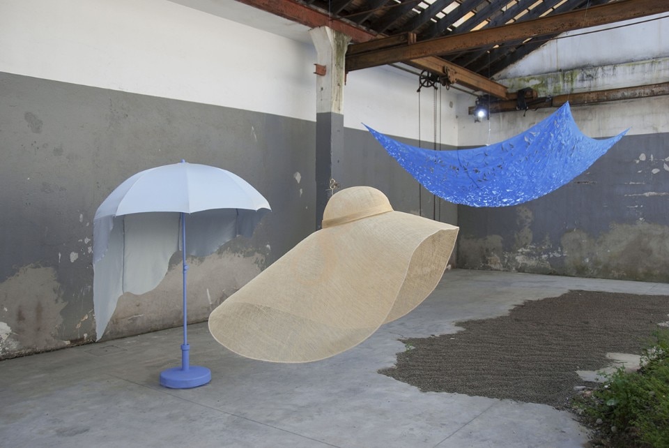 The collection is based on the analysis of vegetal cloth both coloured and natural. Wearables are a hat, glasses, a silk veil with an ultraviolet protection factor of 8. Transportables are a tent and a translucent parasol that form a screen anywhere you happen to be.