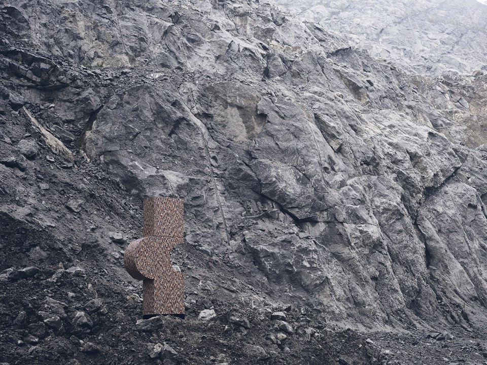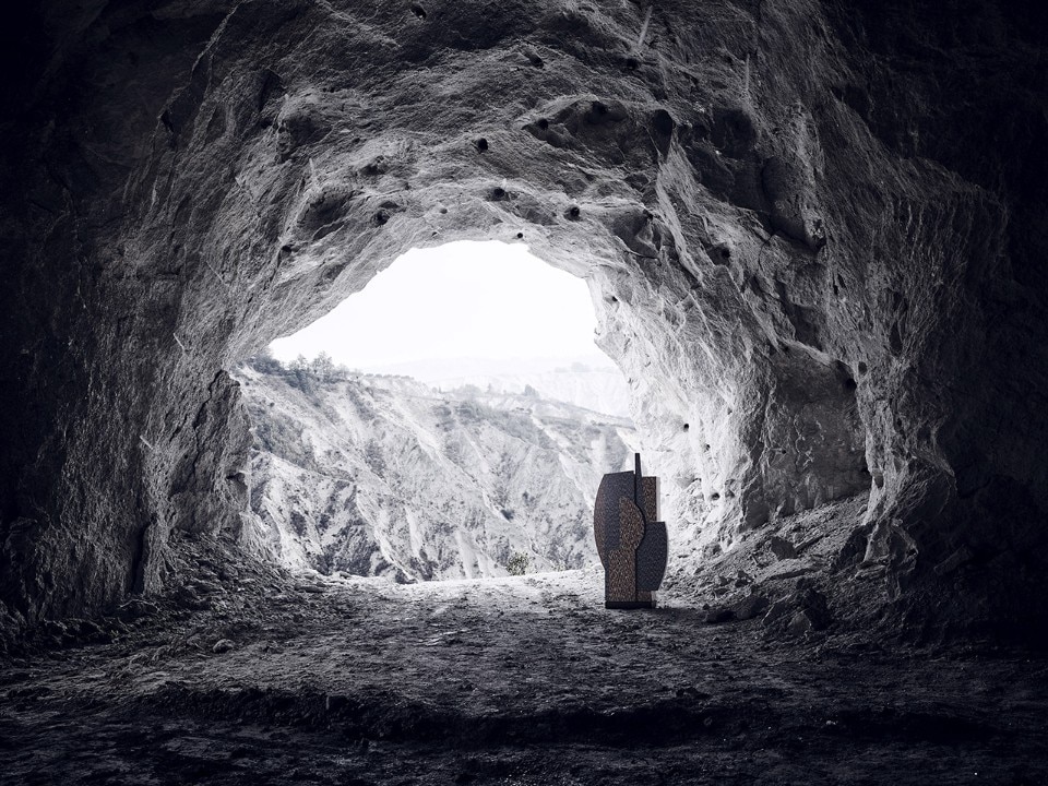 Mendini designed three pieces of furniture to show off the products, using curving protrusions and cut outs in reference to the solar and lunar theme of the two-part collection. The one-off pieces, collectively named Tre Primitivi, are currently on show in Alpi's Milan showroom.