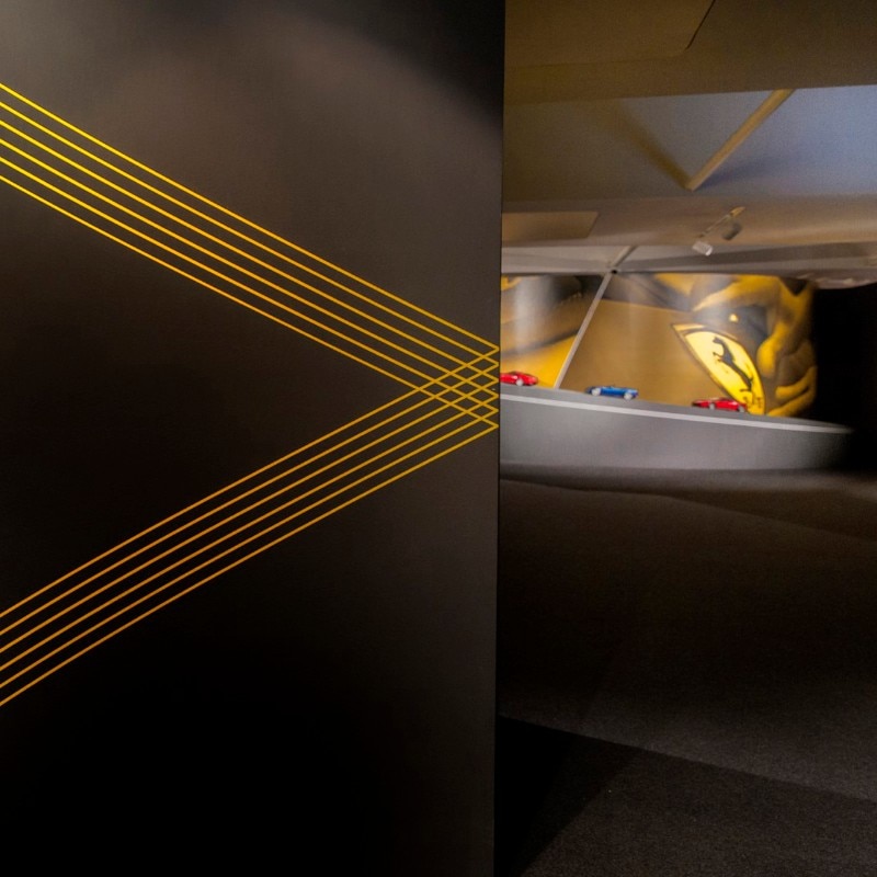 The spaces tell the story of the Cavallino thanks to an installation for the fans that leads visitors into an episodic film in which each room represents a chapter.