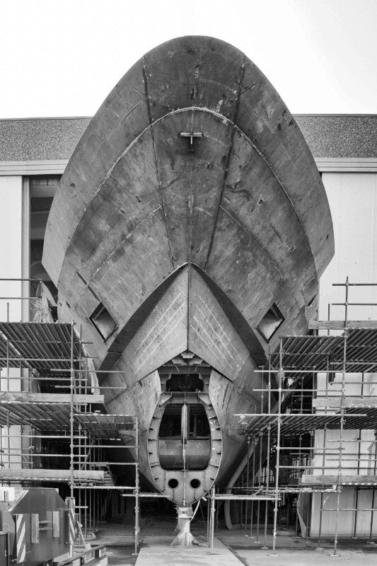 Different moments and places are brought together in an exhibition constructed around 30 black and white shots by the photographer Silvano Pupella in the shipyards of La Spezia. The reportage focuses on close-up shots: the hull, the ladder, the prow under construction, the propeller, and all the almost-organic forms of these giants of the sea forged by human hands. Seen from this point of view, these forms lose all sense of scale and their beauty is shown, one notes the aesthetics of the fragments, a certain scenographic feeling in this open-air shipyard (a kind of outdoors theatre) and the appreciation of manual labour which demands fatigue and rewards with satisfaction. It is a spontaneous reminder of the culture of design typical of Italian boat-making - even for those who are not lovers of the sea. It is in fact a discussion on art and design as well as on the passion for marine travel. How can the culture of design of Italian boat-building (from Gio Ponti to Gino Coppedè, from Gustavo Pulitzer to Guido Canali and Gae Aulenti) be recovered, updating language within the essential relationship between art and design seen as a capacity for creativity and not simply as formal aesthetics?