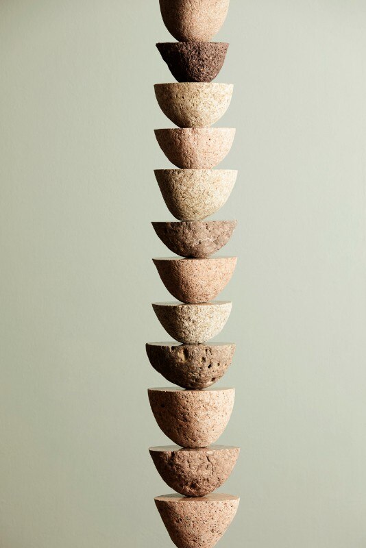 Other must-see pieces include a bold yellow coiled pot made of vitrified stoneware, as well as clay and resin structures resembling a water tower and coal bunker, and sets of dishes in ‘toasted’, ‘flecked’, ‘buff’ and ‘grogged white’ finishes.