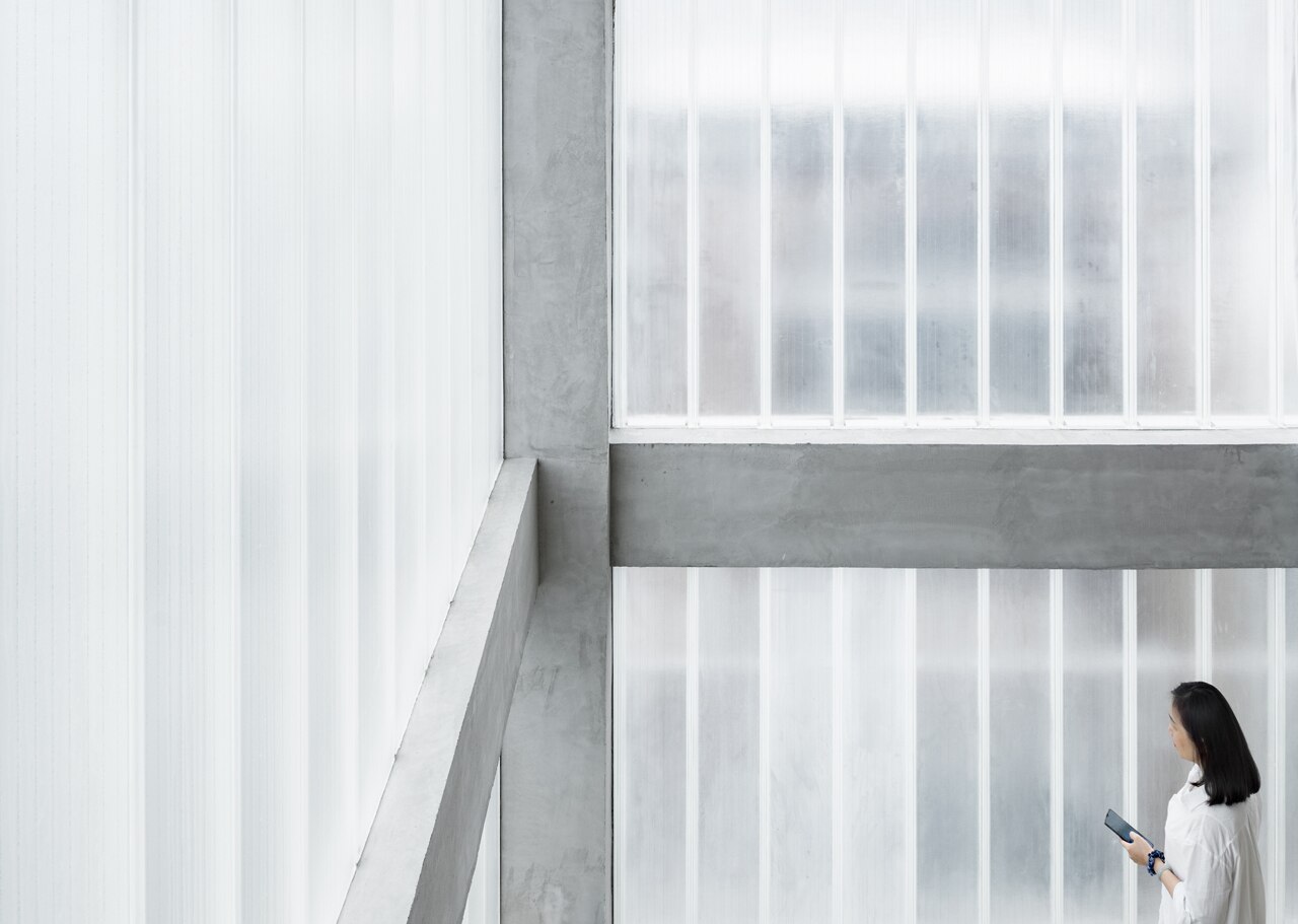 Frosted walls and steel latticework to light up a guest house in Guangzhou