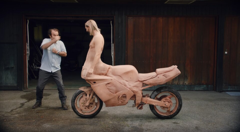 The characterizing element, however, of these mythological figures is the human skin, which also covers the mechanical parts of the vehicle, detail that emphasizes the hybridization between the two natures. “I must say that I didn’t feel very comfortable with the idea of the boycicle, until I realized that we had to make the motorcycle part with the skin too. That’s what really got me exited” comments Rupic.