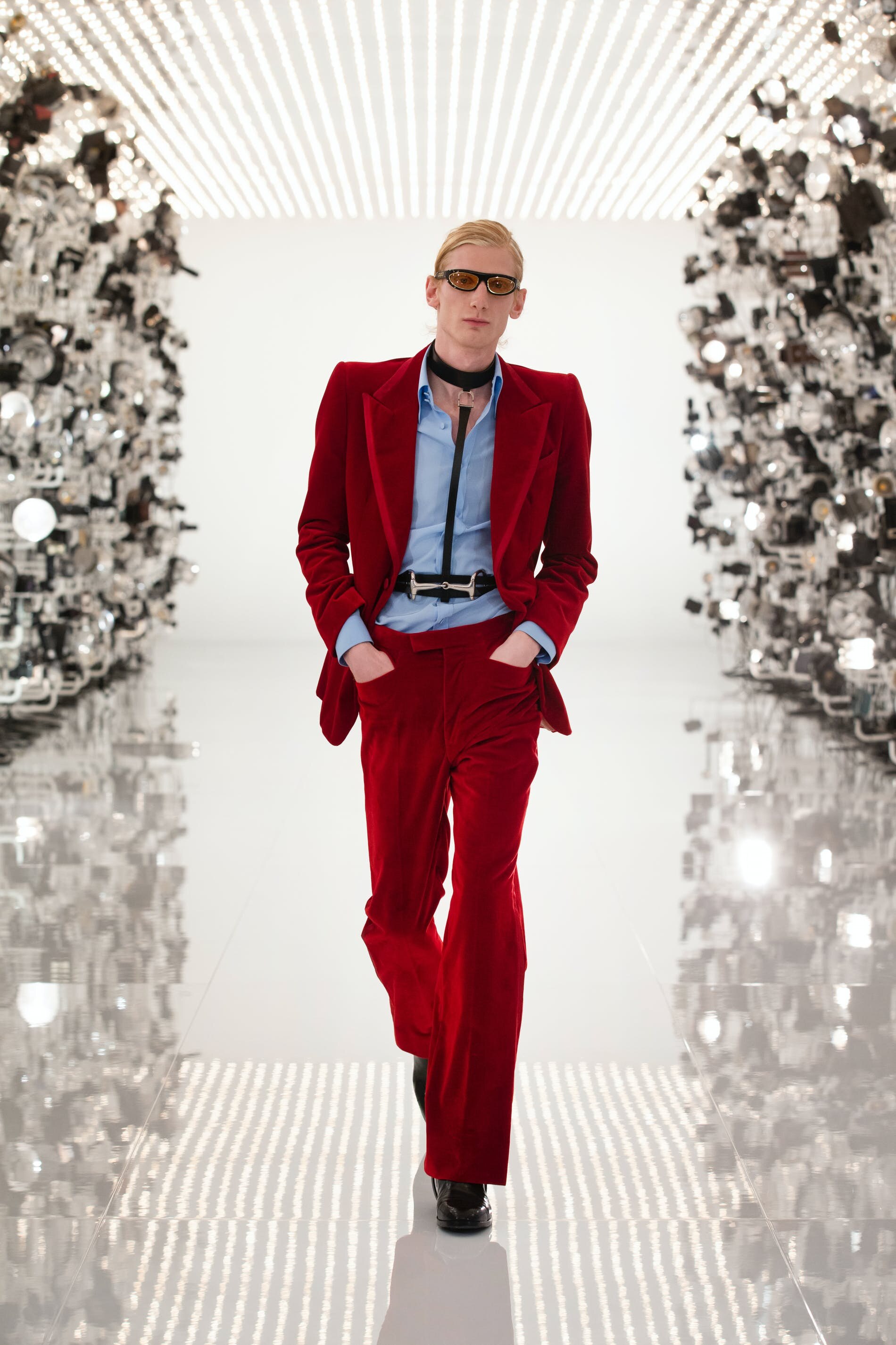 The challenging goal of this collection was to retrace a dense past but without falling into nostalgia. The catwalk retraces, therefore, the inspirations and cuts that have made the brand famous in the different decades: from equestrian references to Hollywood divas, from distinctive Tom Ford suits – creative director of the brand from 1994 to 2003 –, to the sartorial wisdom until you get to the Balenciaga citation, companion of the Kering stable. These hacked looks appear alongside outfits that embody the Gucci codes: 70s silhouettes, bondage elements, and hints of the equestrian world appear everywhere. Reflecting on the brand’s 100th anniversary, the designer wanted to include aspects of how he envisions “the brand mythology”.