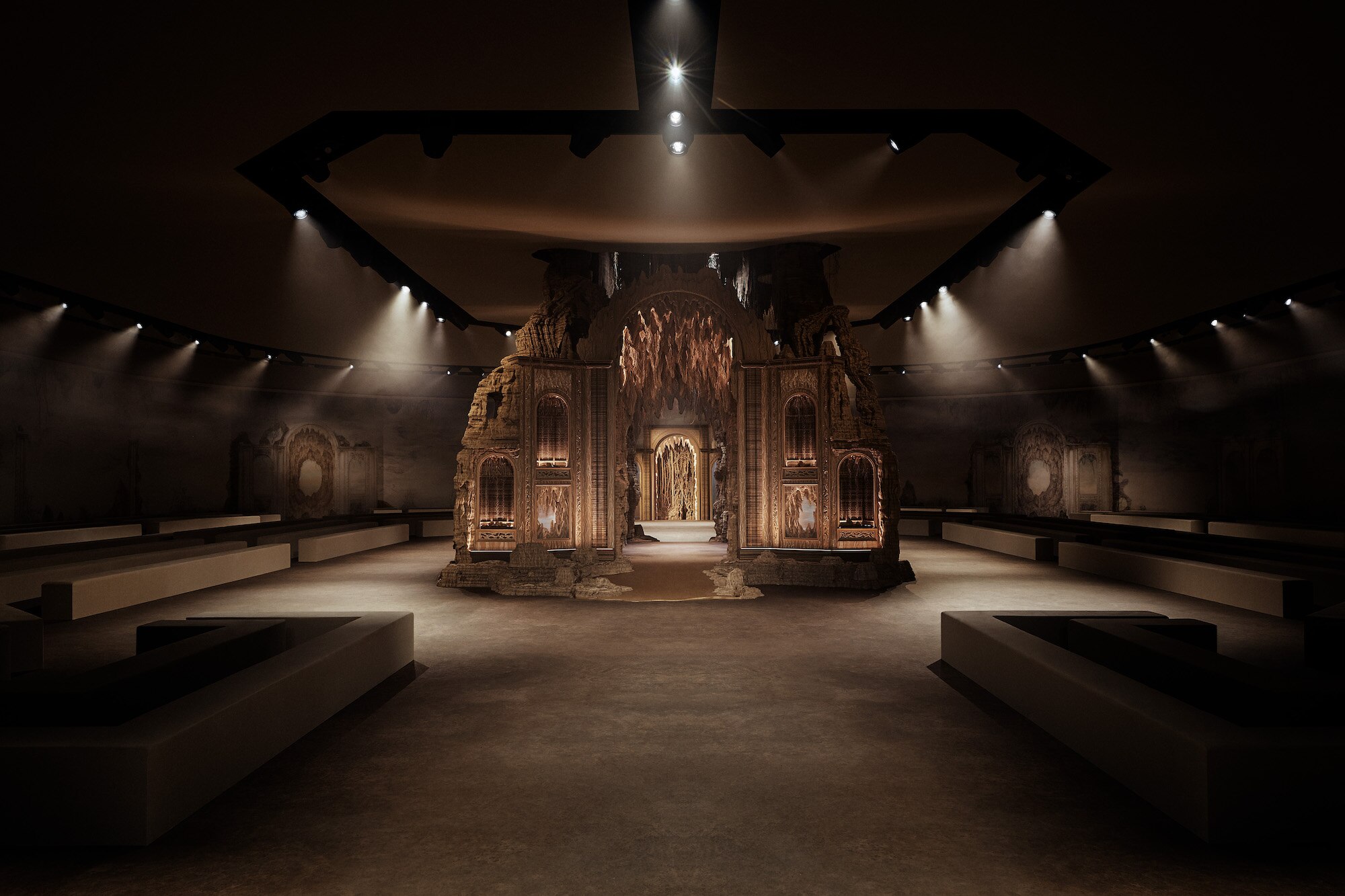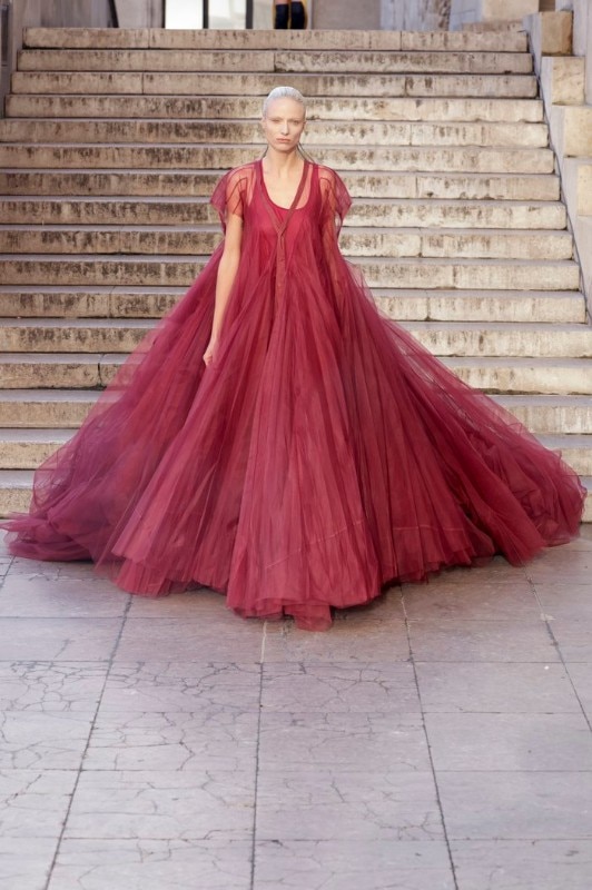 Maria Grazia Chiuri was inspired for the design of the latest collection by the Maison Dior by another woman, like her, Italian but who moved to Paris: the Florentine noblewoman Caterina de’ Medici, one of the most evocative figures in European history. Through her figure, Chiuri explored women’s ability to exercise power through a mod. These included delicate Burano lace, the corset, and stiletto heels, whose imports reshaped Parisian fashion. The show is conceived as a baroque feast set in a marquee in the Jardin des Tuileries – commissioned by Catherine de Medici – complete with a wire grotto by artist Eva Jospin and expressive ballet.
