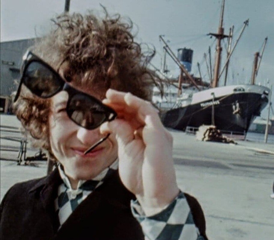 Sunglasses have often made an appearance in representations of Dylan since then, such as the famous and kaleidoscopic one created in 1967 for the underground magazine Oz by Australian illustrator Martin Sharp, whose reproductions – printed at the time by Big O Posters – are regularly auctioned for several thousand dollars.