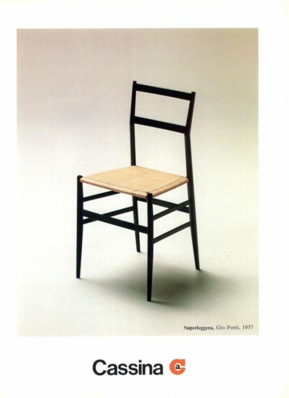 Cassina began producing the chair in 1957, but the project dates back to 1955 and has even deeper roots. Ponti looked to the tradition of the Chiavarina, the Ligurian chair that filled Italian dining rooms for decades and that, through a curious cultural trajectory, has recently even appeared on the Super Bowl stage. This was not a nostalgic reference, but rather a direct engagement with an archetype—one in which Ponti saw a clear potential for modernity.