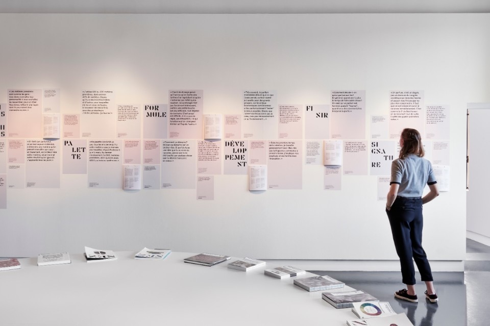 The exhibition, which aims at demonstrating that perfumes too are carefully designed products – just think about their reproducibility and packaging – features the work of thirteen perfumers among whom are Céline Ellena, Marc-Antoine Corticchiato, Rodrigo Flores-Roux and Olivia Giacobetti. Each installation – which is dedicated to two to three perfumers – is the occasion to cast light on different aspects of this profession: from composition and style to technique. “With Nez à Nez we wanted to show how perfumers work. What are their inspirations and training? Which are their references and the stories they want to tell the public?”, explains the curator. “It was therefore important for us to select professionals who work in different conditions. To do so we teamed up with French magazine Nez, with which we also developed the catalogue and the exhibition’s visual identity”, concludes Favre Maxwell.