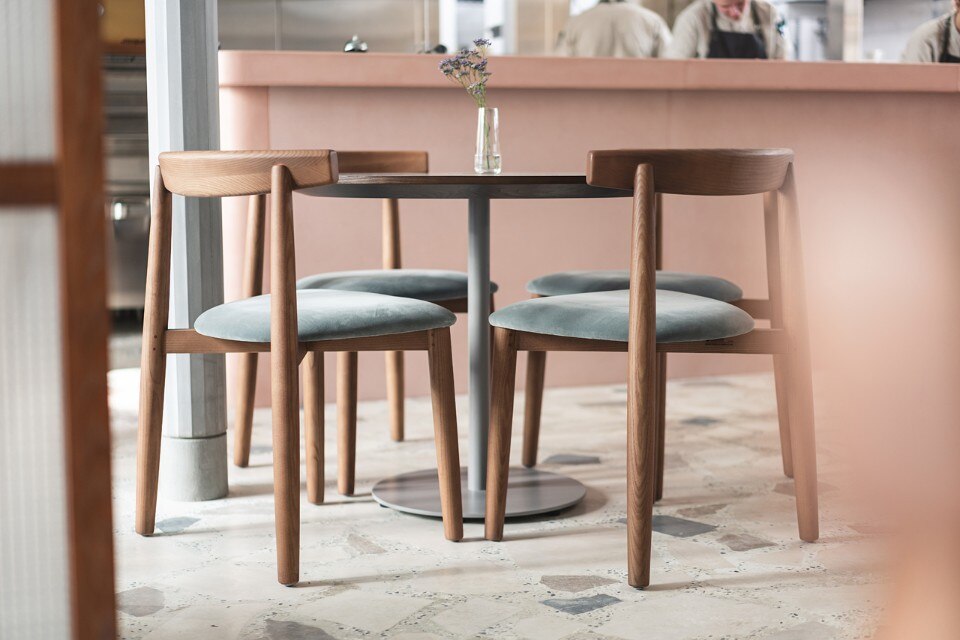 Finally, the Nordic-style chairs by Sancal and Miniforms and the white bar stools by Massproductions lighten up the heavy materials used (concrete, marble, stoneware) with thin and light lines.