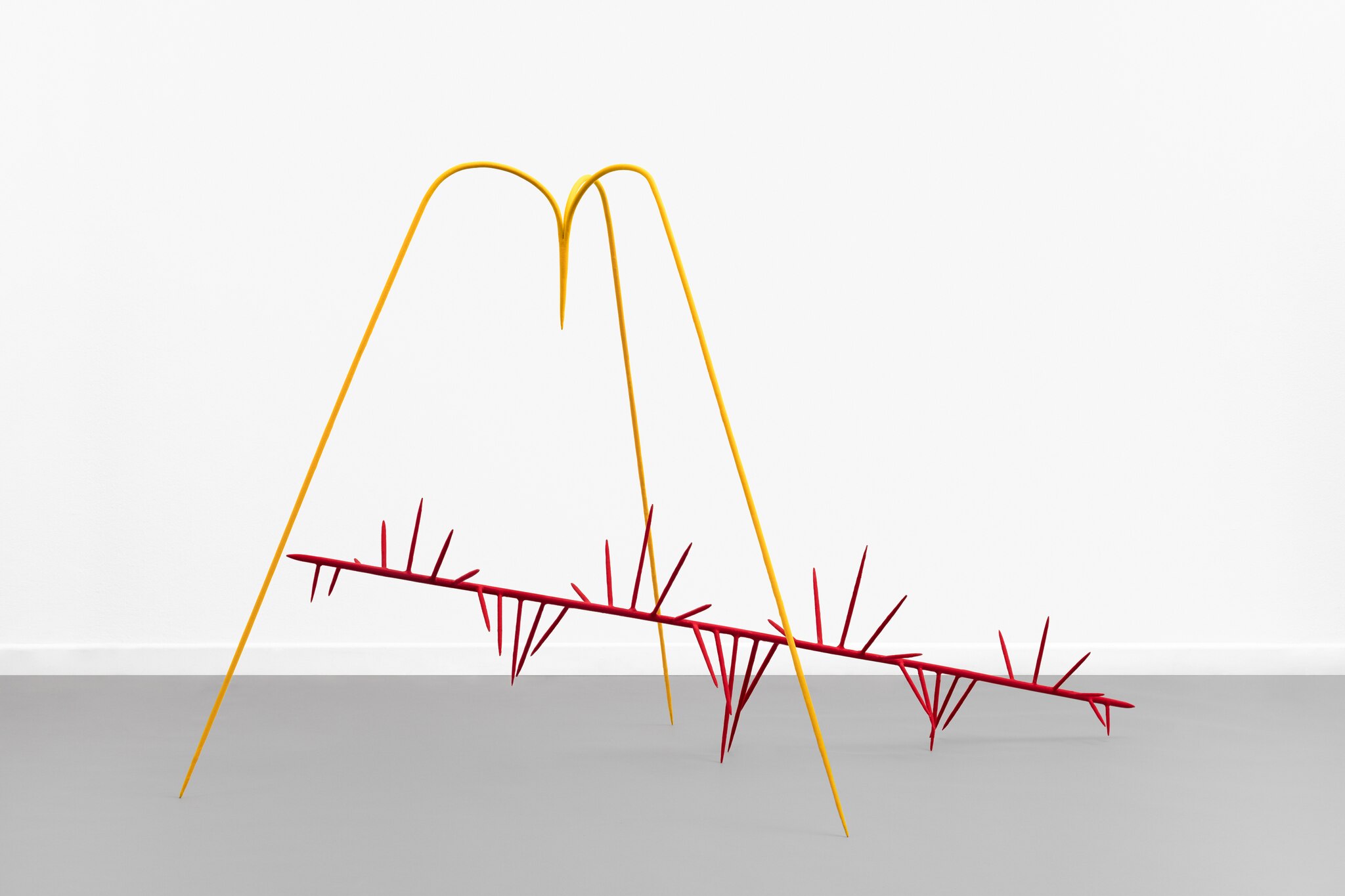 Thin lines and bright colors give life to a visual dynamism that wants to connect the parts of the sculpture in a dialogue, looking for a harmonious relationship between these two natural kingdoms. With this work Petti extrapolates and synthesizes, through an almost scien tific look, the forms of nature in an emphatic manner in a context where all the elements move and creates new aesthetic forms.