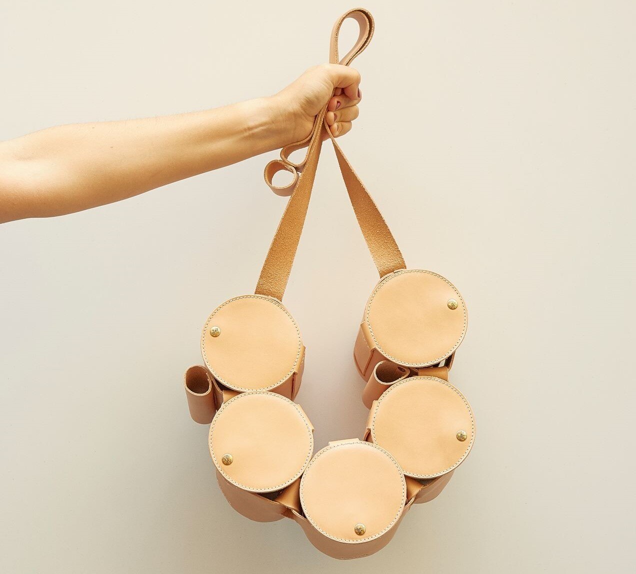 Combining design and traditional craftsmanship, the accessories are transformed according to the needs, so a bocce ball carrying case becomes a clutch bag, a fishing bag a shoulder bag. The series, which also includes a kite bag, is made almost seamless, raw cut, in vegetable-tanned cowhide.