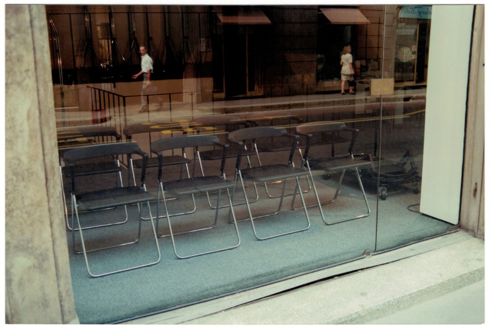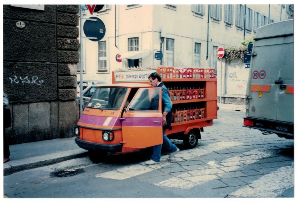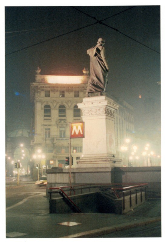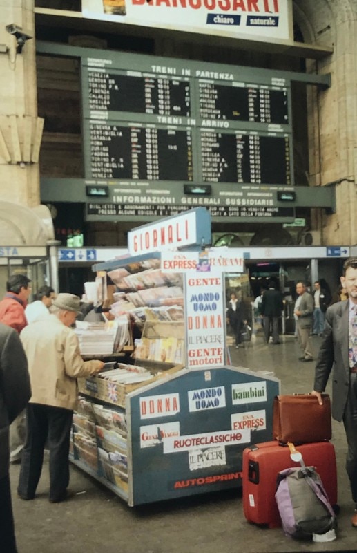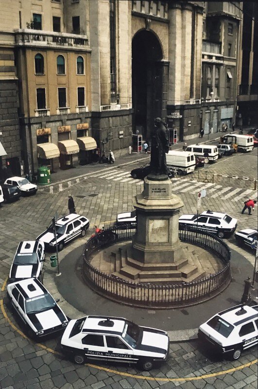 Arriving in Milan, I would spend most of the first day looking for a hotel. I walked around inspecting rooms until I came upon Hotel Nuovo, with the subtitle Aperto tutta la notte (“Open all night”). It’s still there in Piazza Beccaria opposite the police headquarters, and well placed between the Duomo and Piazza San Babila. It was affordable and I was shown a good room on the piano nobile with windows opening onto a small balcony, where I dined on pizza and beer most evenings before heading out to the openings. I had very few contacts, but meeting anyone was not so easy anyway as it needed precise agreement on a place and time in advance, and there was no way to make contact if late.