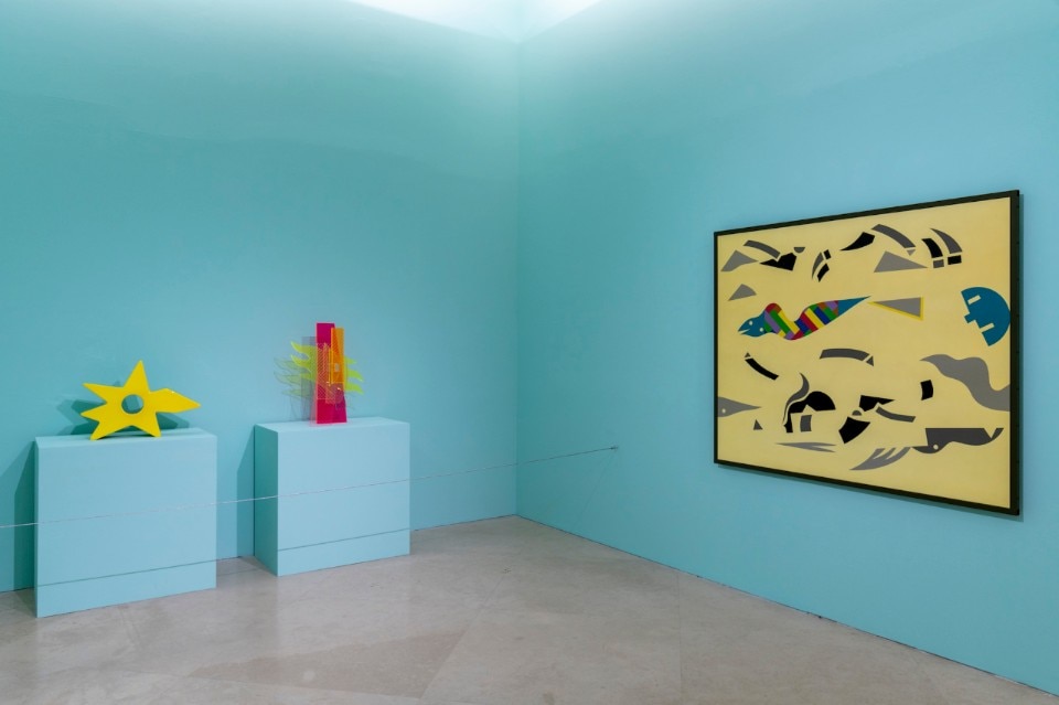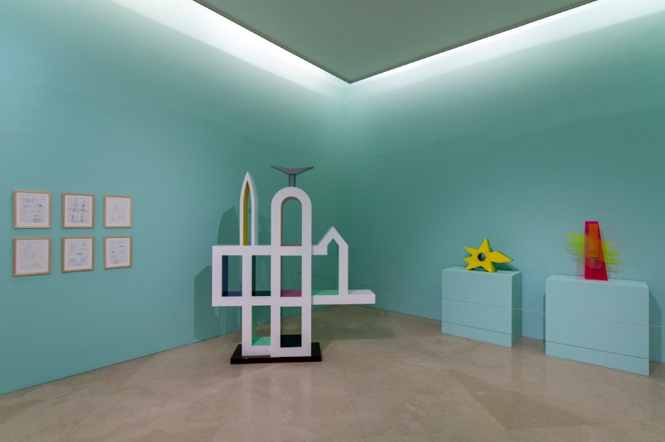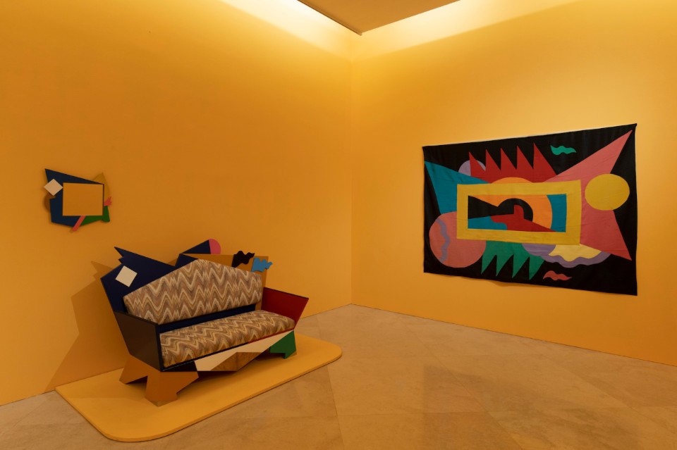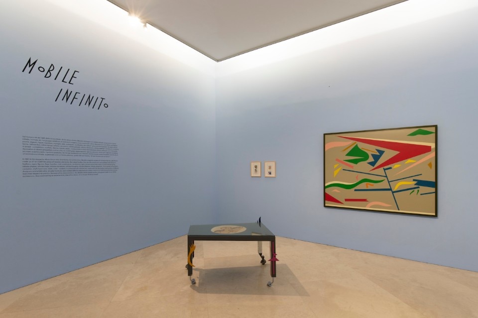 The colour lights up objects such as the Kandissone mirror (1978), the Zabro table (1984). The setting up of the exhibition follows the works on display through a selected chromatic scanning of the walls that go from pink to yellow to sky-blue. A sequence of large backgrounds that help the fruition and the reading of the various stations/sections. Il mobile infinito (1981-2004) restores the desire of sharing a journey in search of accomplices capable of designing a library of forms, a philosophical piece of furniture as he liked to define it.