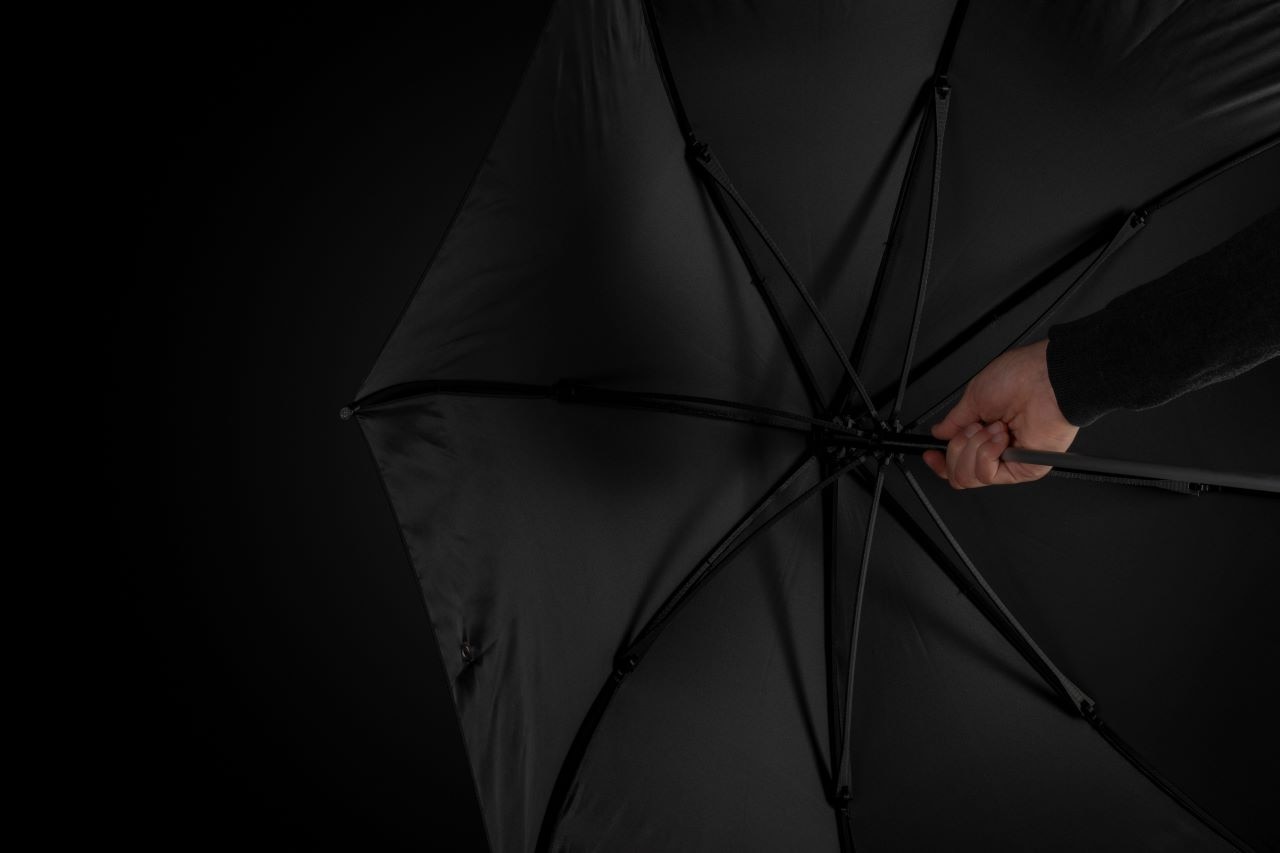 No glue is used, but only two screws for the handle and the entire mechanism, which makes the umbrella easily recyclable.