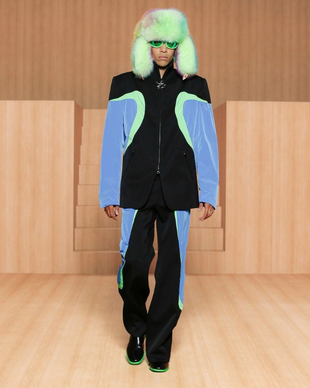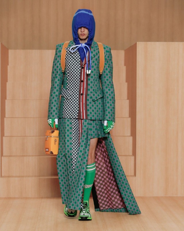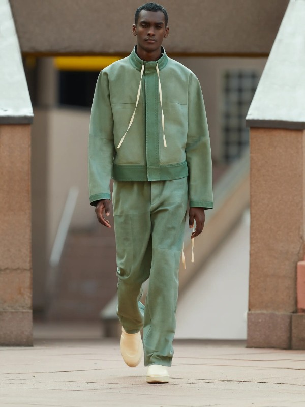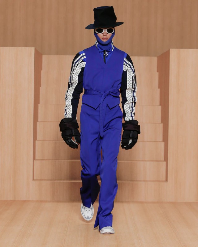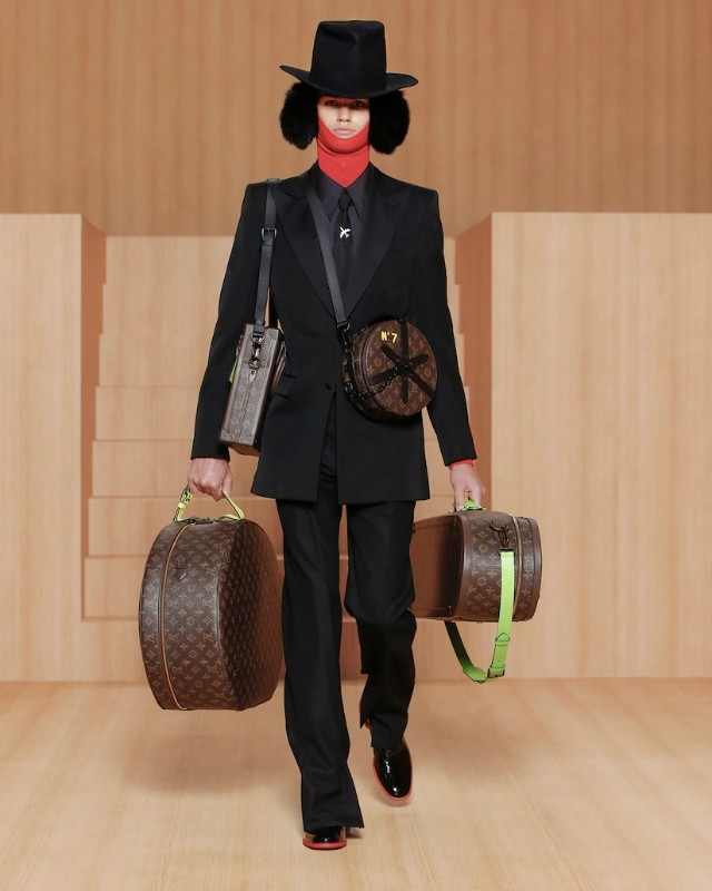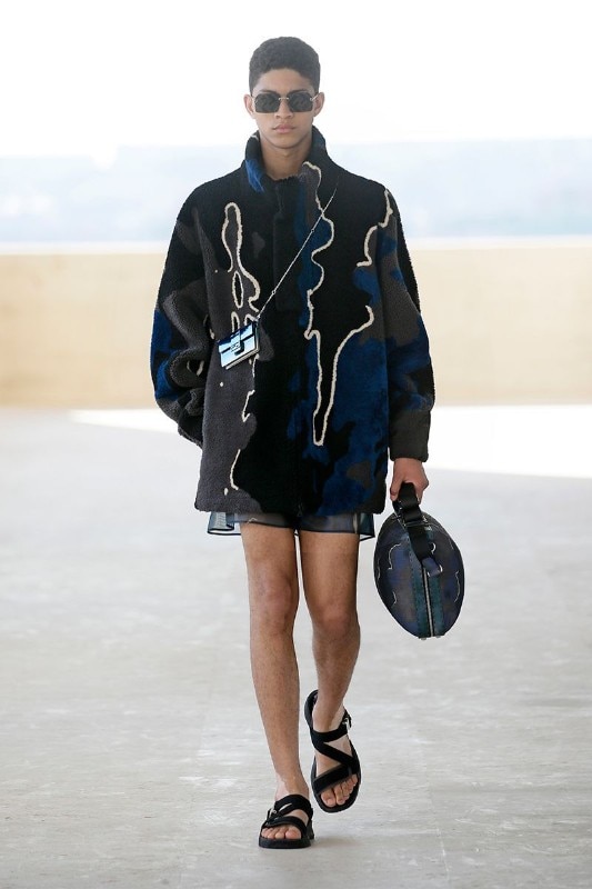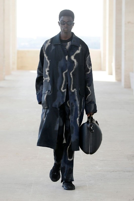 Inspired by the Amen Break, a drum break widely sampled since ’69 and later becoming foundational to hip-hop, the new Virgil Abloh collection explores the myth of ownership in contemporary design. Applied to fashion, the instinctive phenomenon of artistic appropriation and reinterpretation offers endless possibilities for suits, dresses, shirts and t-shirts. With a film directed by Mahfuz Sultan and starring Lupe Fiasco, Goldie, Saul Williams, and GZA, the show focused on transmitting ideas across generations. The video features a father and son united by an unnamed loss, travelling through a dream world to share a message in the afterlife. A recurring motif in the collection and an icon of the rave wardrobe, the jumpsuit is juxtaposed with the suit several times as Virgil Abloh activates activates a dialogue on the unconscious biases attached to these two key wardrobe pieces.