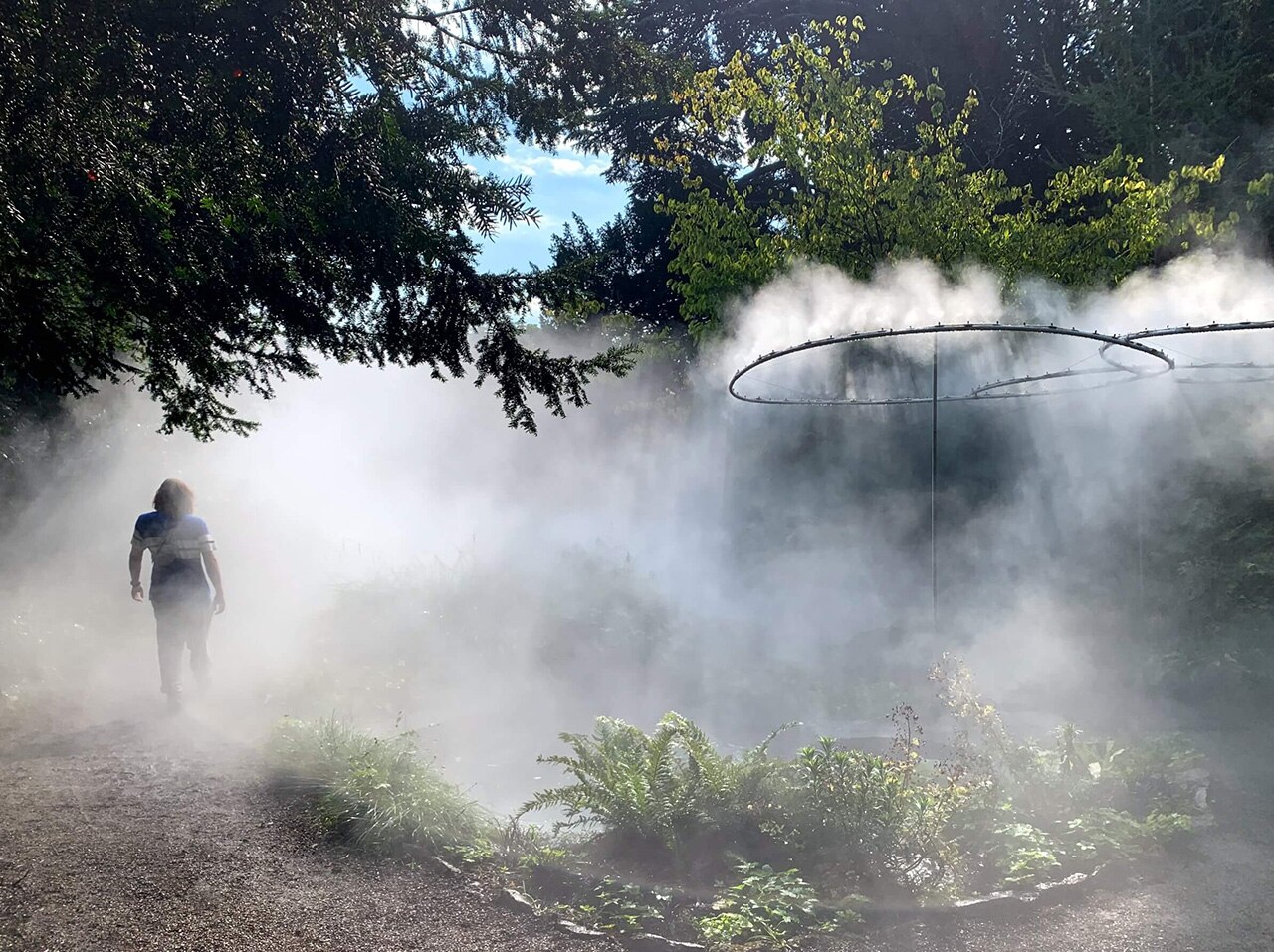 Per l’ultima edizione della Biennale di Design di Zurigo, Authos e Stella Spaziali trasformano lo spazio dell’orto botanico attraverso un’installazione di realtà aumentata fatta di nebbia artificiale ed effetti laser.