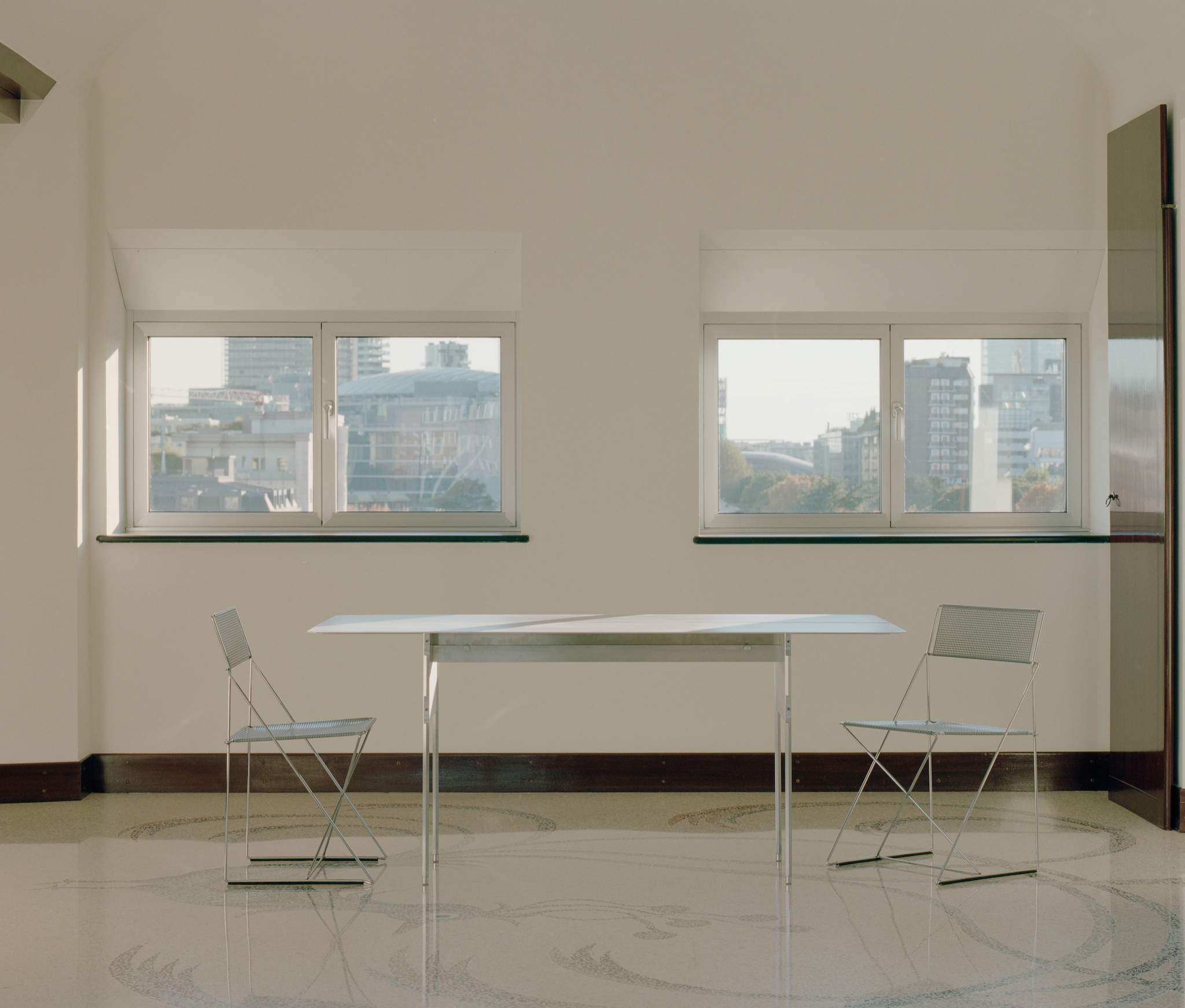 Stefano Marongiu and Marco Cattivelli designed a table that is a praise to lightness in order to furnish the attic by Caccia Dominioni located in Piazza Carbonari 2, Milan.