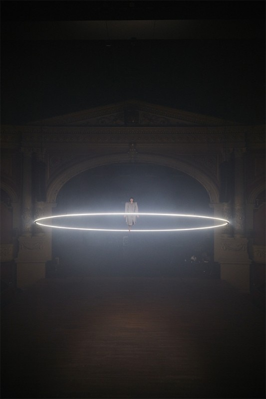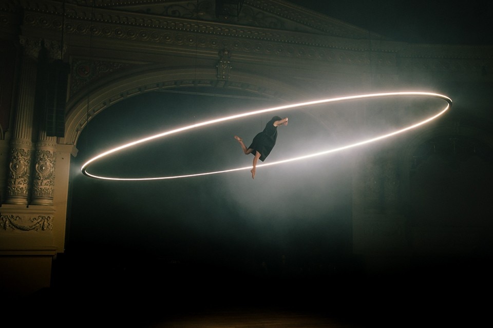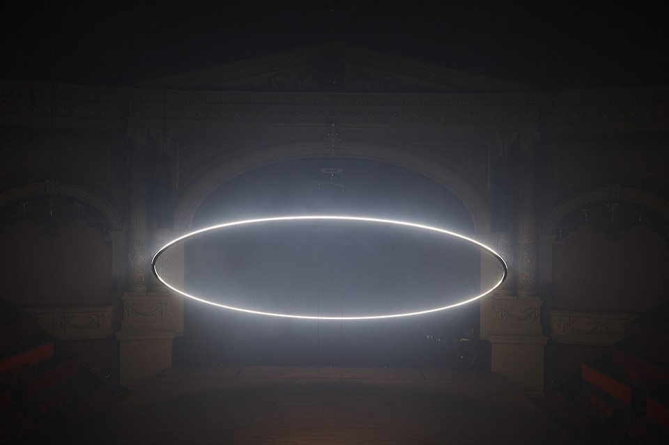 The Orbital project, designed in the beginning for the Royal Theater Carré, it appears as a luminous ring that correlates mainly with the surrounding architectural space. Consisting of about 8,000 super-fast LED pixels, set on a circular aluminum skeleton, the installation is maneuvered thanks to a special controller created for managing the light at 1000Hz, also making use of an IP protocol and software specifically created to make the movements of light and skeleton as fluid and natural as possible. The creative process of this kind of projects is mainly based on the possibilities offered by technology that are contextualized in a physical space, but which still rely on intuitive capacity and human sensitivity to exist, says Nick Verstand