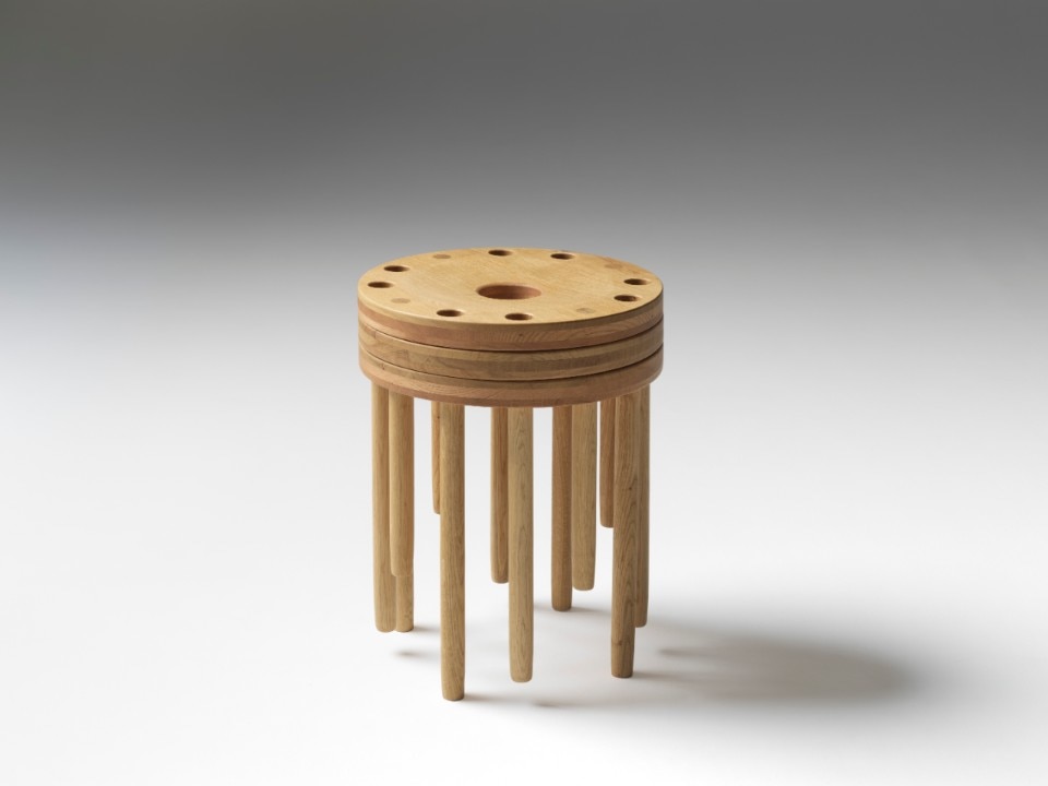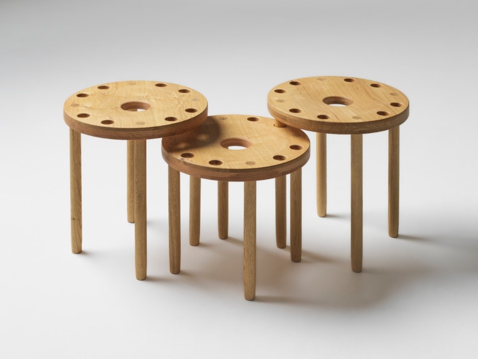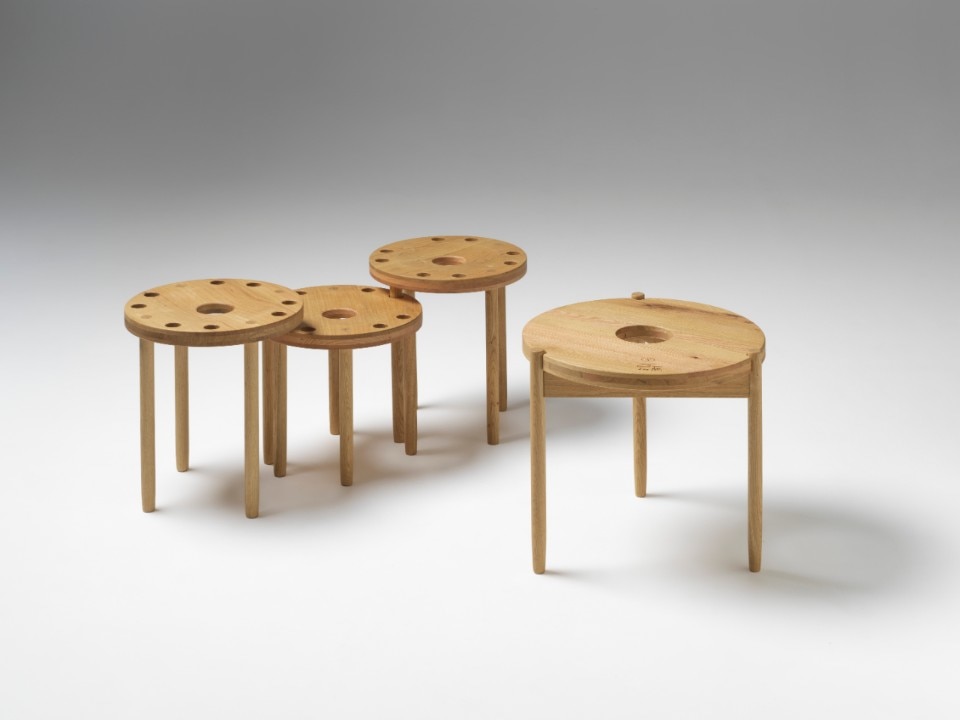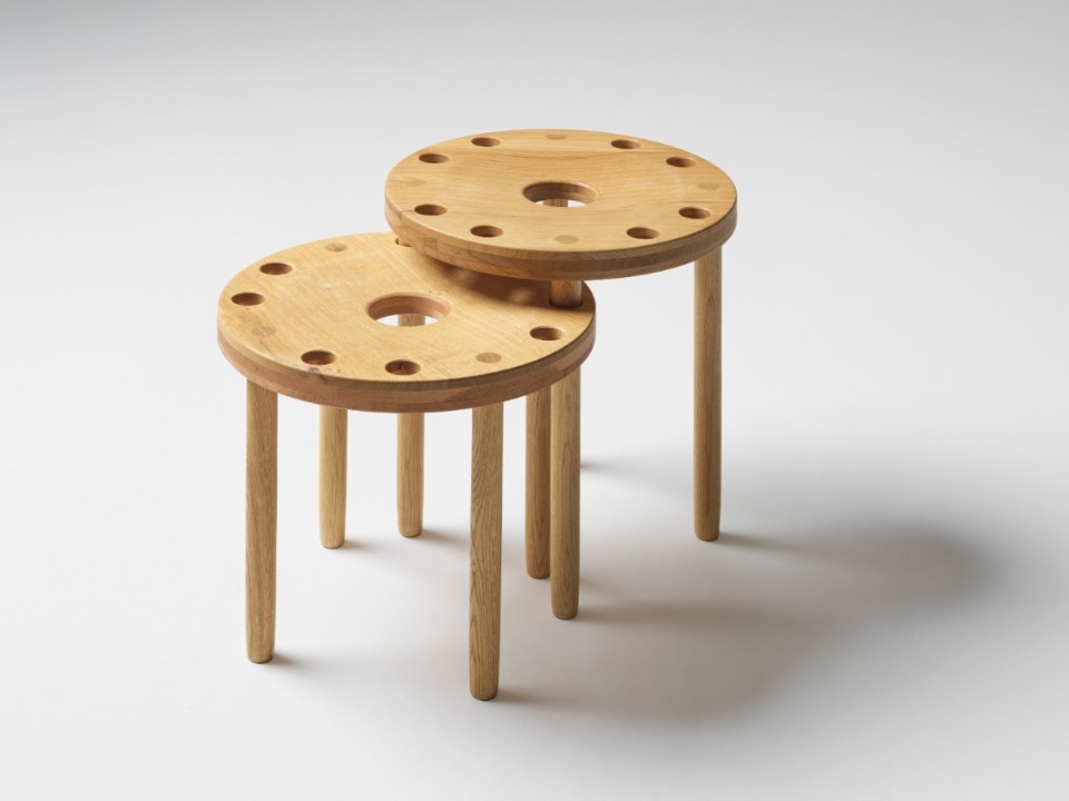 In order to craft lagoon durmast, a trip to the mountains was needed: the initial prototypes were entrusted to an artisan from Cortina, who tested production feasibility. Thus Campo San Barnaba was born, the collection in briccola wood made up of a set of three stools with varying heights and an end table with removable top (also inspired by Gellner).