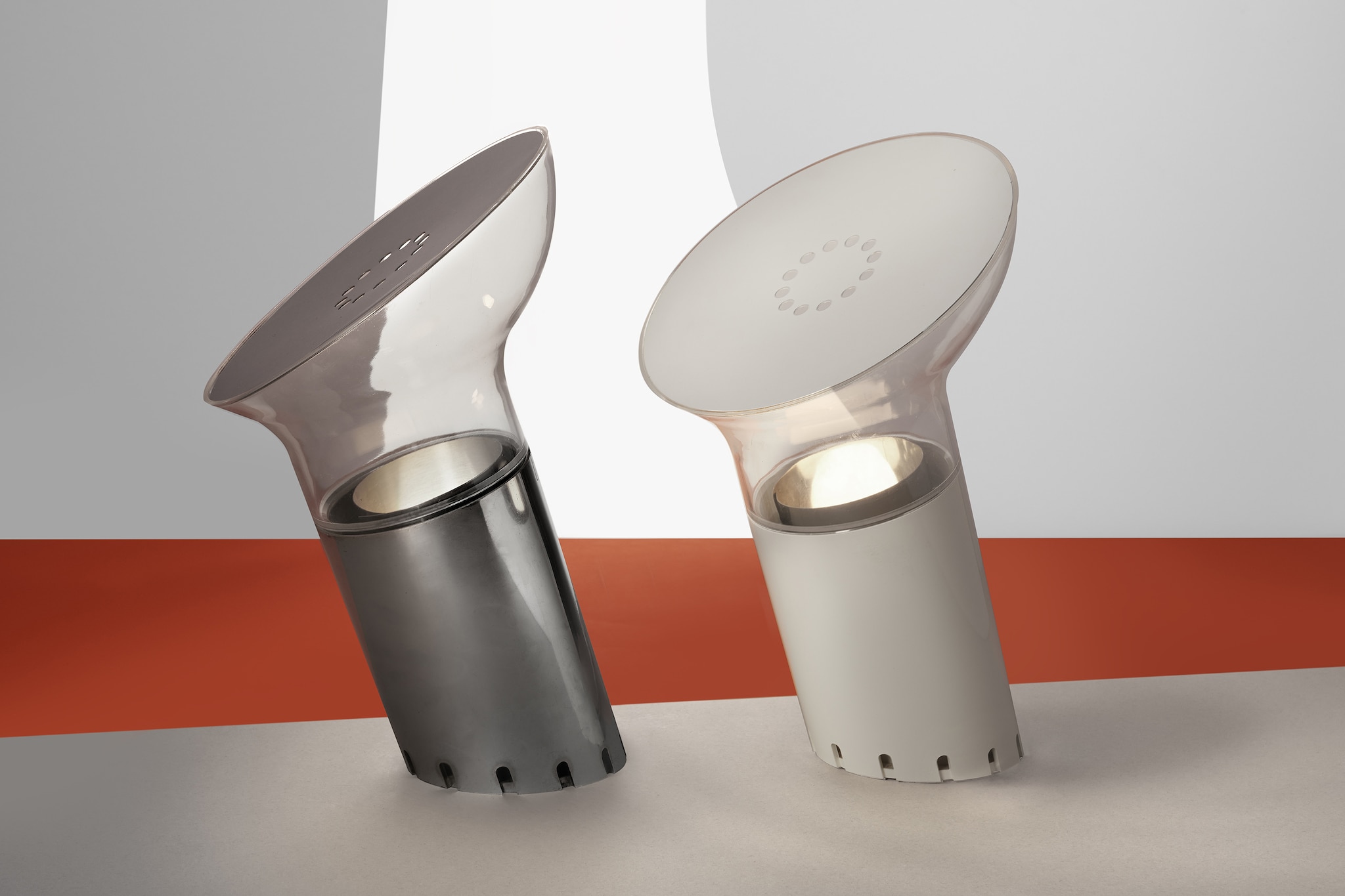 “More sculptures than objects, more games than lamps.” With these words, in July 1972 Domus presented the new products for the home seen at Eurodomus, the modern fair that promoted a dialogue between design and art, with stands that were true designer installations. This is where the Nitia lamp designed by Rodolfo Bonetto (1929-1991) for iGuzzini made its debut. In methacrylate and stainless steel, austere and with few elements, it was something out of a mechanic’s shop. Bonetto – with eight Compassi d’Oro awards and a parallel career as a jazz drummer – was a passionate designer of cars and engines who applied his knowledge of technology and production processes to small-scale objects that still today lack deserved attention for the design of their forms: engines, appliances, alarm clocks, telephones and, naturally, lamps. Nitia appeared in Domus alongside its “peers” of the time: the Papera by Cini Boeri in polyester resin, and the Cammino by Angelo Mangiarotti in opaline glass with a chrome-plated base. These lamps illustrated the direction designers were headed in, bending sheet metal, colouring resins and salvaging industrial discards in search of new materials with which to create practical objects at affordable prices. The result was a design with simple, evocative, geometric and almost sculptural forms.