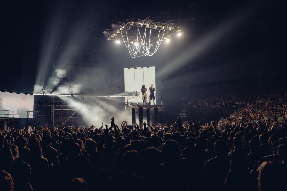 The (IMAG) Image Magnification technique, which projects enlarged images of the artists onto large screens, offered new perspectives on the performance, enriching the narrative with live footage and unusual angles.
