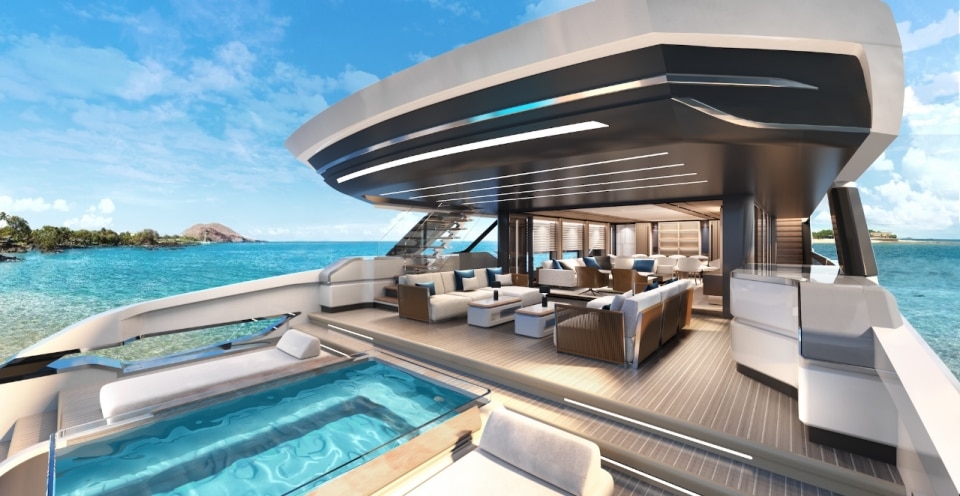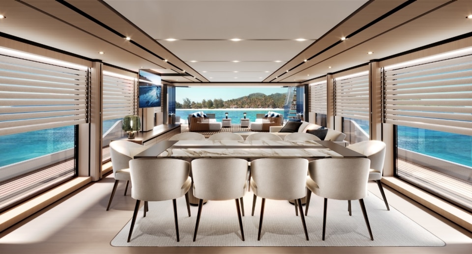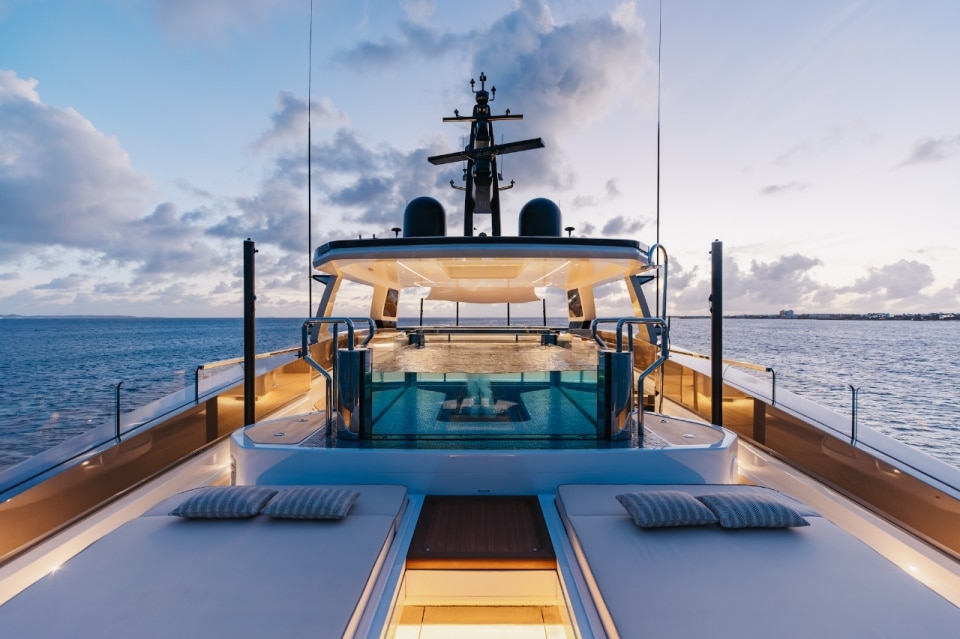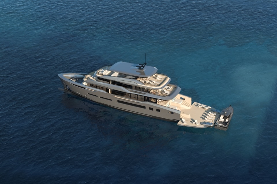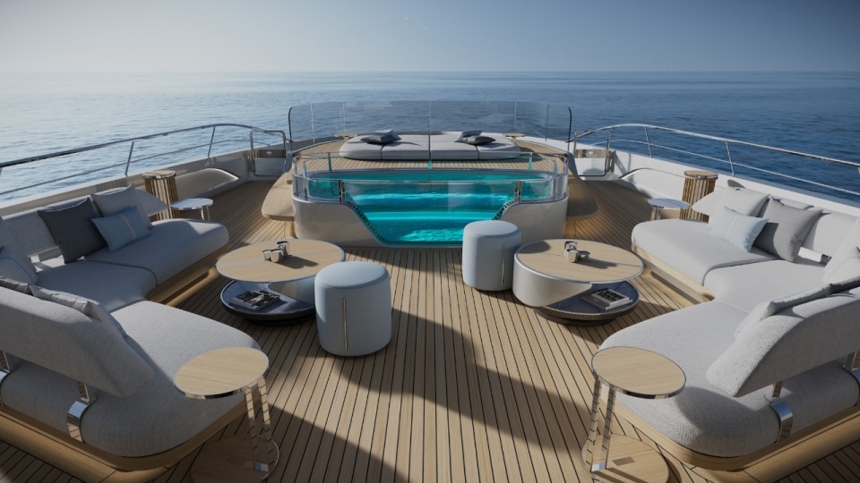 It is the luminosity of the interiors on the Dom range; the articulation of outdoor spaces on the XO Line, a near-sequence of terraces on the sea. It’s the pursuit of tailor-made performance, as in the latest 48-metre developed with the owner in a team with Floating Life, Satura Studio and Zero13 to be ready for a world cruise at high latitudes: dominated by continuous sightlines – from the 360° glazing of the main salon to a lower deck that runs uninterrupted along the full length – and featuring solutions inspired by Italian know-how, including a tender launch system that operates directly from the sea.