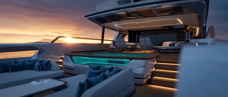 These innovations are always tied to spatial thinking: people are living aboard boats more and more, and Baglietto saw this decades ago by treating the aft deck as habitable space and popularizing the flybridge, today a cornerstone of yacht design. The connection is not only with the practices of living but with architectural project thinking: Al-Fahedi emerged from a collaboration with Studio Zuccon, and for thirty years Baglietto’s boat concepts have been signed by architect Francesco Paszkowski.