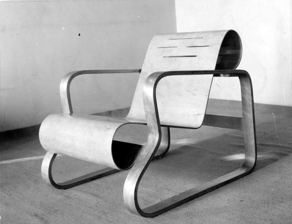 As early as the late 1920s, Alvar Aalto developed a whole range of furniture for the Paimio Sanatorium (1929-33) that transformed bentwood into a soft and unexpectedly ergonomic material. Prominent among them is the Paimio armchair (1932) designed to make it easier for tuberculosis patients to breathe through the inclination of the backrest and the design of the armrests: an object in which form and function coincide in an exemplary way.