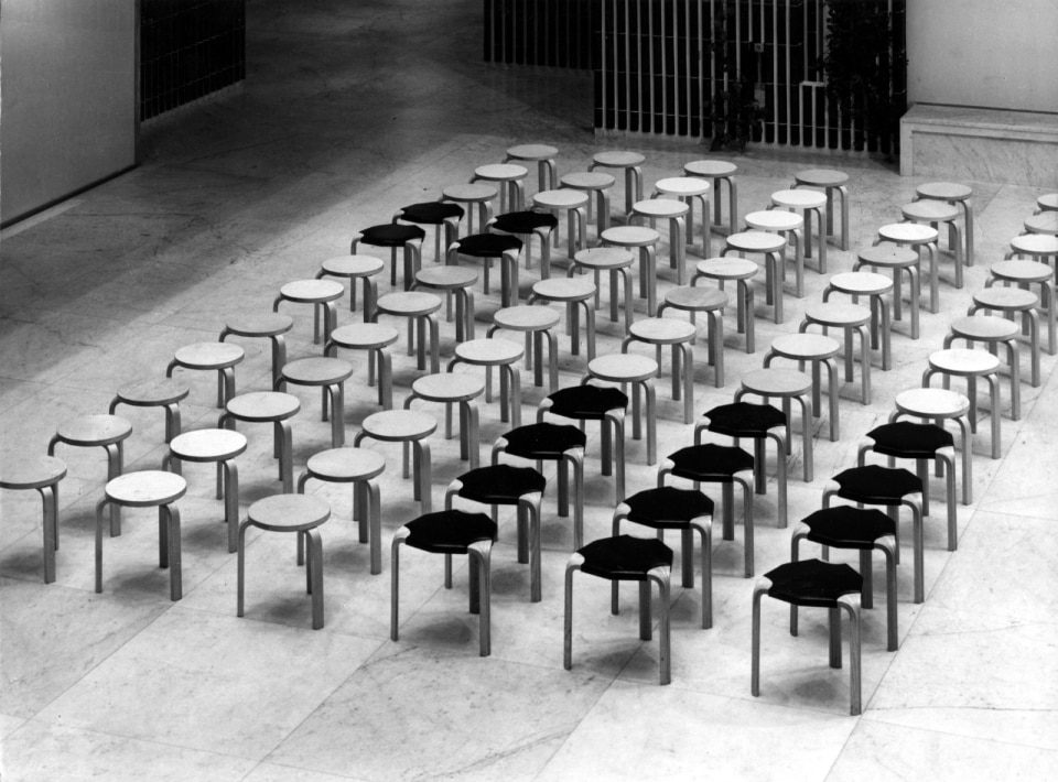 The Stool 60 (1933) (not to be confused with the four-legged of IKEA Pall Sixty-1 model!), as well as the later 69 chair (1935) are both rational and "empathetic," easily stackable and still able to dialogue with interiors of different eras and latitudes.