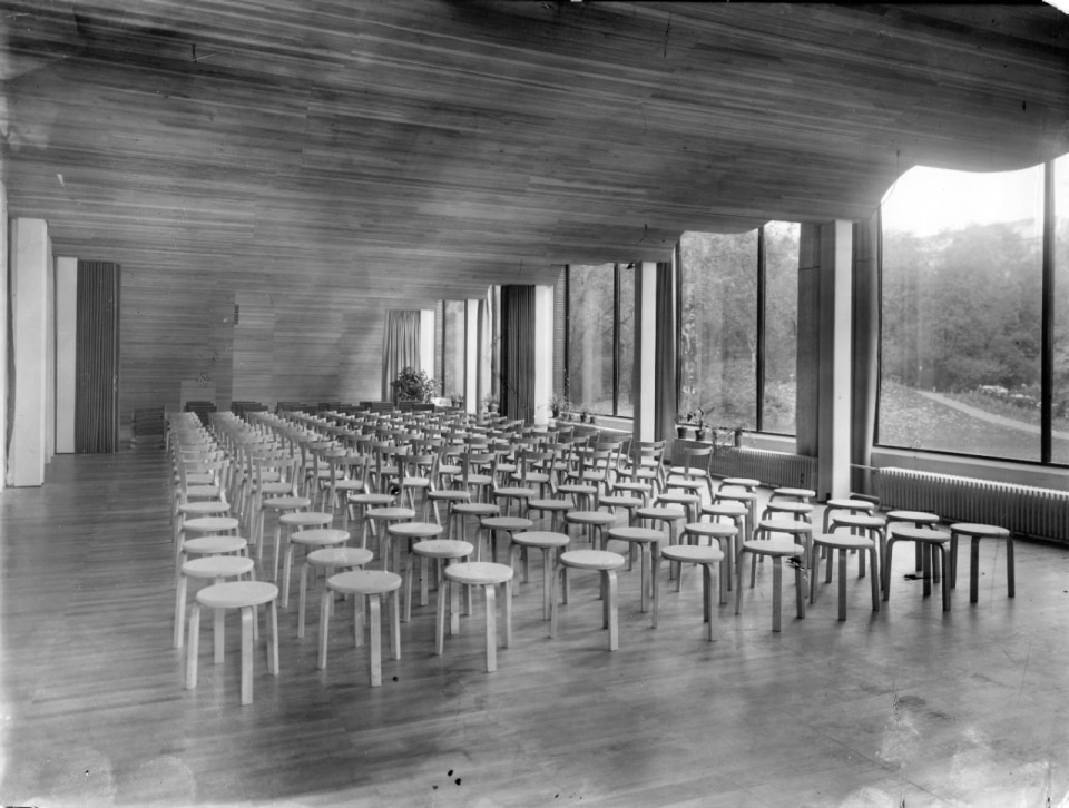 It was, however, with stool 60 (1933) – probably Artek's most famous and most imitated object – that Aalto made a most radical move. The stool, which came into being when he designed the Viipuri library (1930-35), is a minimal, element apparently claiming no authorship: the three curved legs made of laminated wood become a recurring “module” in his work.