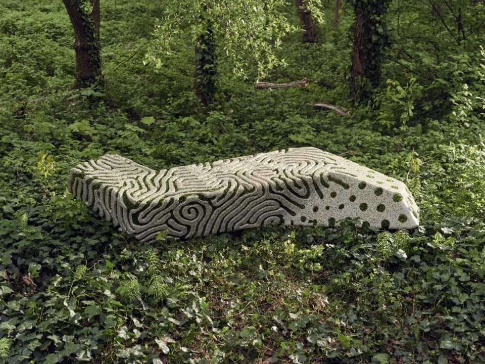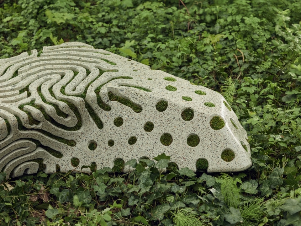 Yet Laarman’s research does not operate solely within the domain of computation. In recent years, the designer has turned his attention to what grows, mutates and coexists—and therefore evolves. The Symbio Benches (2024), stone or recycled concrete structures designed to host mosses and lichens, propose a post-humanist conception of public furniture: no longer surfaces that resist nature, but supports that invite it to take root, grow and slowly transform the object. A work to be built together.