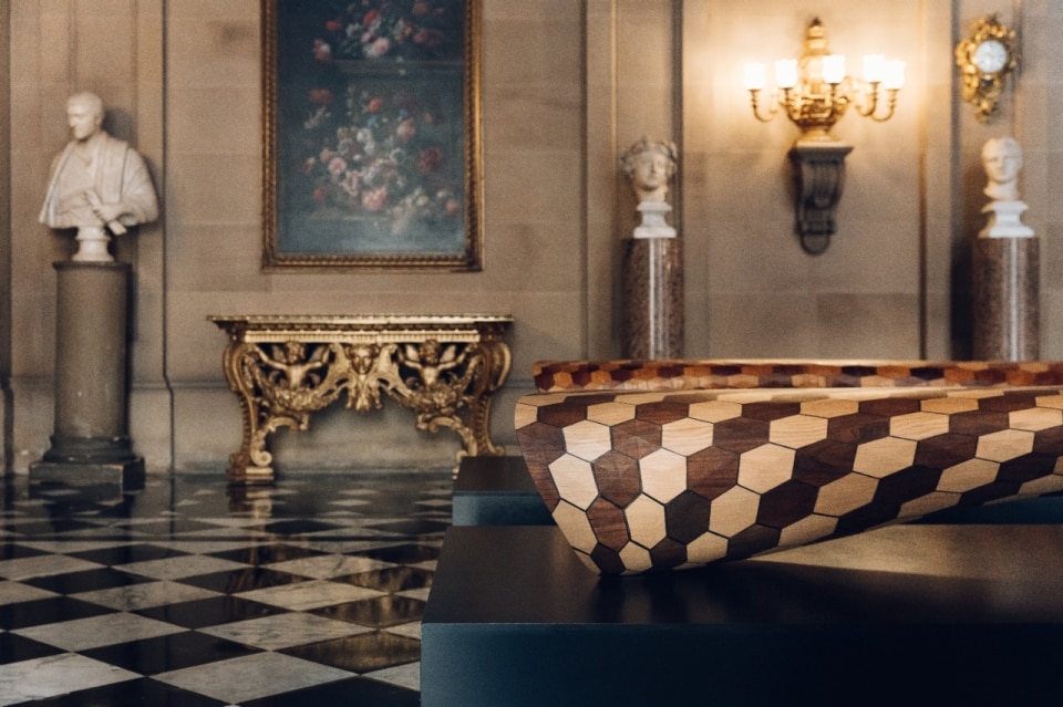 While the Bone collection explores structural lightness, the Makerchairs project (2014) radicalises the concept of modularity. The seats—such as the Makerchair Hexagon or the Makerchair Diamond—are composed of dozens, or even hundreds, of elements, each milled or printed separately, forming a constructive mosaic that combines precision engineering with painstaking craftsmanship. The design resembles a three-dimensional puzzle: an open, replicable system that anticipates a future in which digital production and craftsmanship collaborate rather than compete.