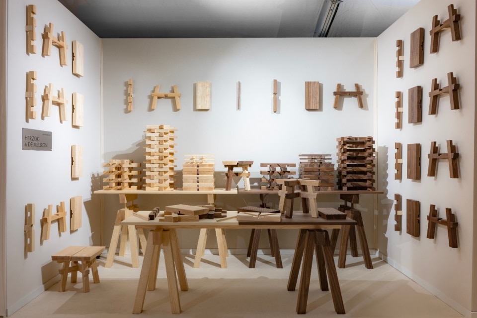 Herzog & de Meuron, among the most celebrated names present at the fair, instead propose an object on a smaller scale but extremely precise from a design perspective. Their Hong Kong Stool, a playful yet functional reinterpretation of the stool, is inspired by construction toys based on the assembly of small wooden elements. Initially designed for the M+ museum in Hong Kong, the small stool is now distributed in a limited edition in walnut and ash versions. The quality of the woods remains a hallmark that can be perceived at first glance and then immediately to the touch, capable of evoking sensitivities and millenary craftsmanship even through an object with a contemporary language.