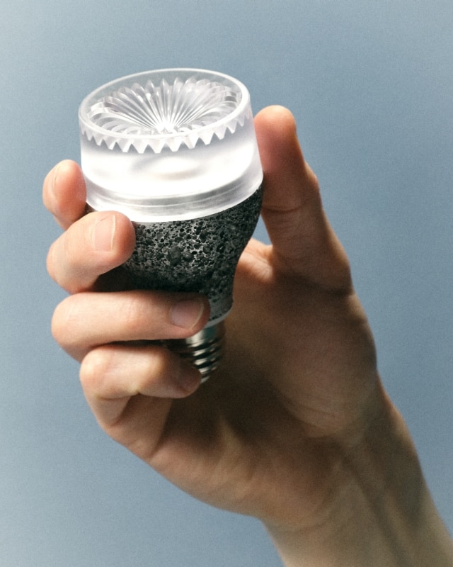 At an even smaller scale but equally seductive is the project by the Swiss studio Iiode, specialized in sustainable electronics applications. The ambition, almost bold for a small agency, revolves around a question: how can a more efficient LED light bulb be obtained? The answer does not lie in micro-components but in a radical process of revision. The body of the Re27 light bulb is made of die-cast aluminum: its porosity allows heat to dissipate, while also producing a texture that overturns expectations regarding the materiality and aesthetic presence of this everyday object. Made almost entirely with recycled materials, it can be repaired and recycled in the spirit of full circularity.