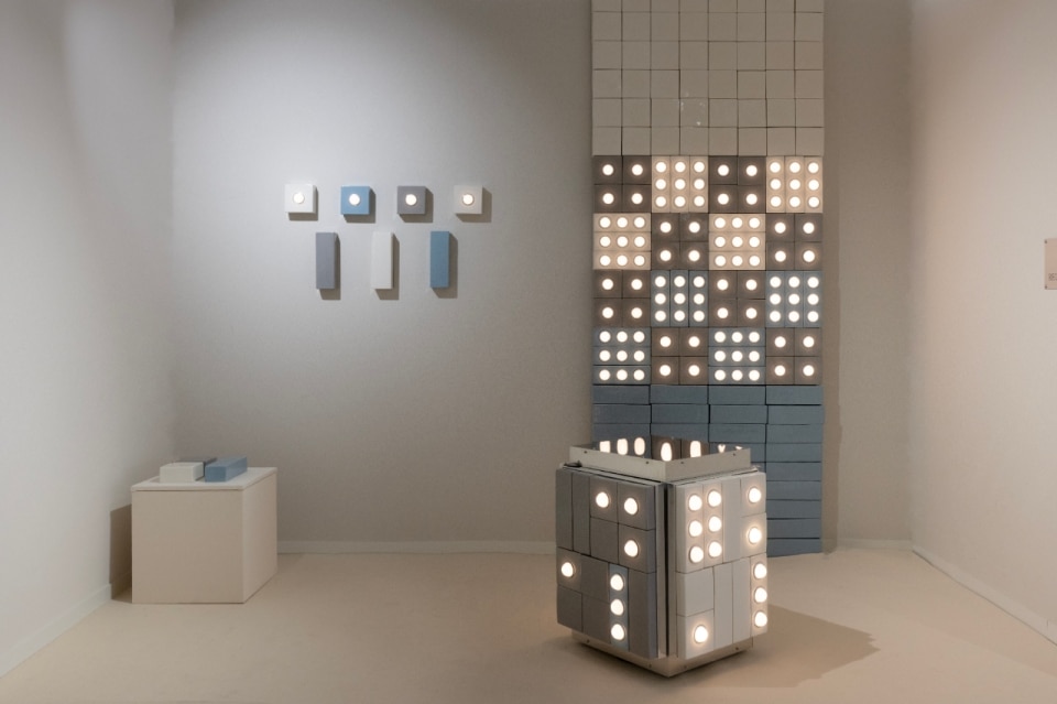 On the lighting front, many proposals embrace a marked decorative attitude, fully entering that branch of limited-edition design that plays with the sculptural value of the lamp-object. However, a countercurrent approach is gaining space without compromising expectations of atmospheric quality and research. The Italian design duo RedDuo presented in preview Glowtile, a modular solution composed of glazed ceramic blocks that may or may not include an exposed light bulb. Produced by Leucos, the system stands out for its scenographic impact on large surfaces: by exploiting the compositional potential of the blocks, the solution becomes a second skin with strong material presence that can be used to cover walls or ceilings, both in retail environments and in domestic interiors.