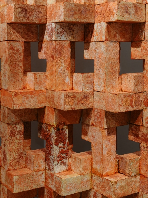 There are also new developments from Aleor, a gallery founded in Brussels in 2024 that continues its experimentation with biodesign and its applied frontiers, without interruption between authorial research dedicated to the collectible market and material applications aimed at the industrial world. Among the latest pieces presented at Matter and Shape is Trametes, a room divider developed by Bento. The multidisciplinary architecture atelier succeeded in the technically non-trivial challenge of stabilizing an unprecedented red mycelium composite. The modular reconfiguration offered by the blocks establishes itself as a cooperative solution, open to the possible desires of use and composition of the user.
