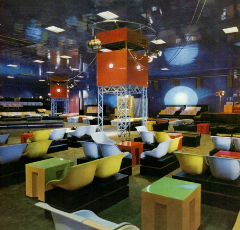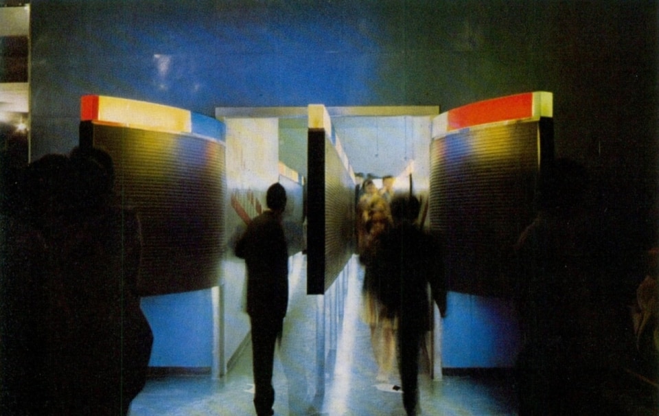 The space itself was a field of experimentation. The club was conceived as a transformable environment, made of mobile lights, platforms, and surfaces designed to shift throughout the night—closer to a stage device than to a conventional nightclub. Custom installations were created for the Piper, such as Bruno Munari’s light machine and Sergio Liberovici’s “sound staircase,” turning the architecture into a fully sensory environment.
