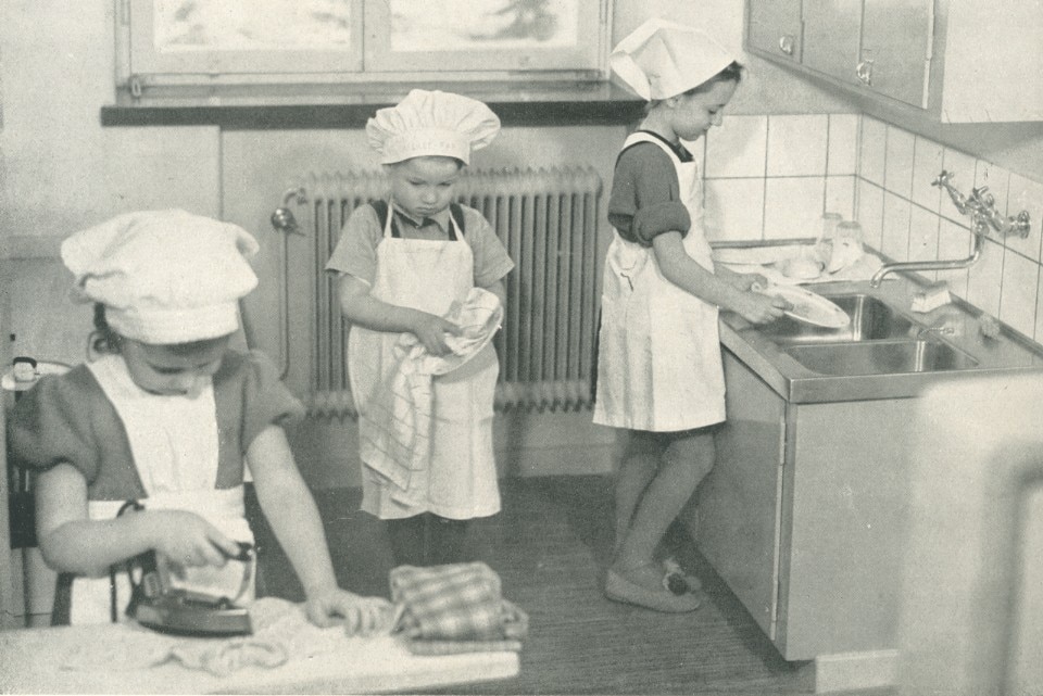 The pedagogical ideas of Maria Montessori in Social-Democratic Sweden, and in general in Scandinavian countries, has taken form, evolving over the years towards a form of gender equality which sees both sexes learning to prepare meals, clean, iron and tidy up. Today’s schools have carefully-designed dedicated spaces which are used by the children to learn everything there is to know about “home economics”. The point is not only that of a fair division of tasks between the sexes, but also an active attitude towards the management of school time which promotes the consideration of the school in its physical dimension as a place which also, and above all, belongs to the pupils themselves.