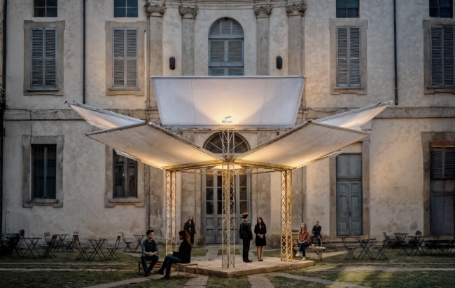 At Milan Design Week 2026, the Italian brand investigates the control of light at Officina through the UrbanGrid experiment for public space, and a comeback at Palazzo Litta with a sunshade that turns into an organic installation.