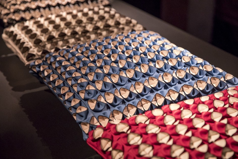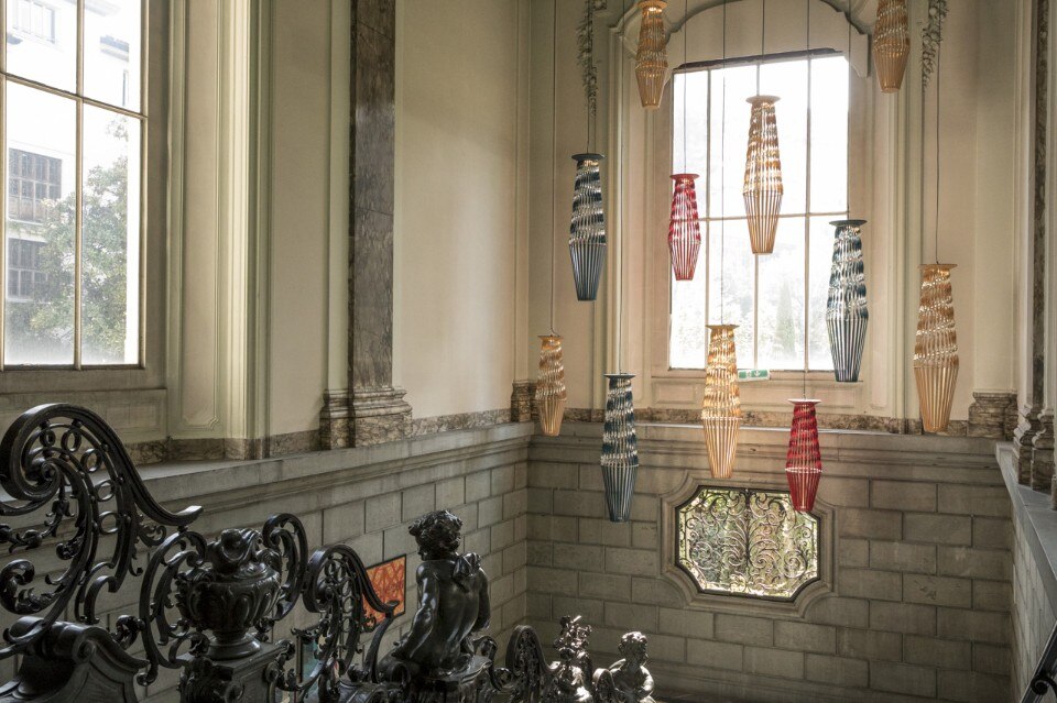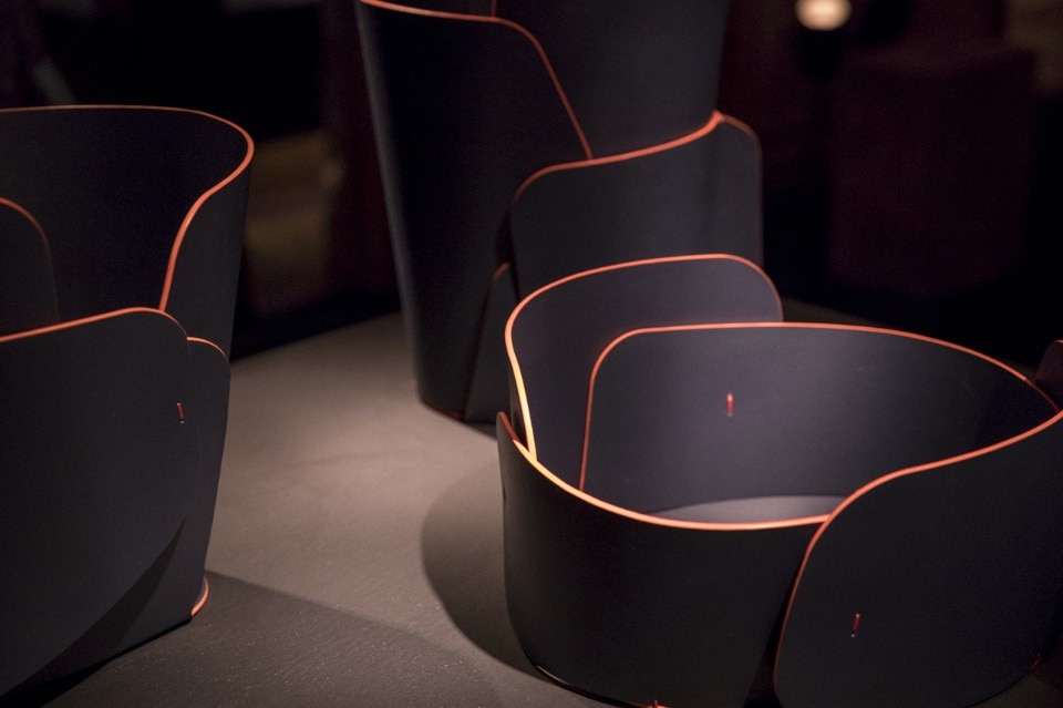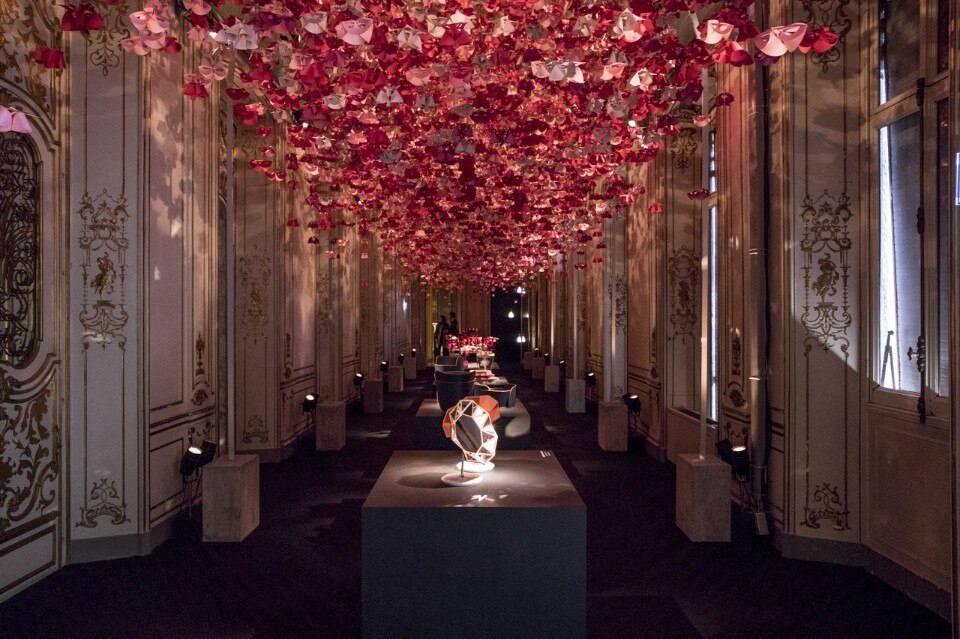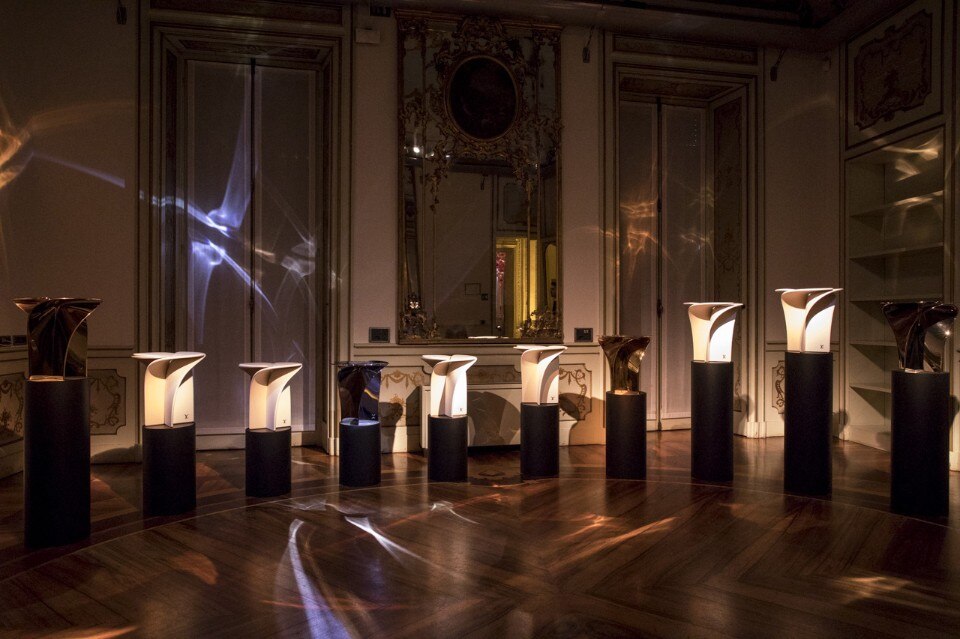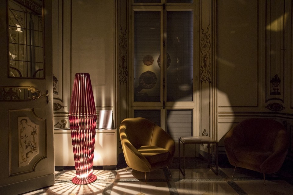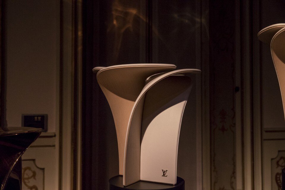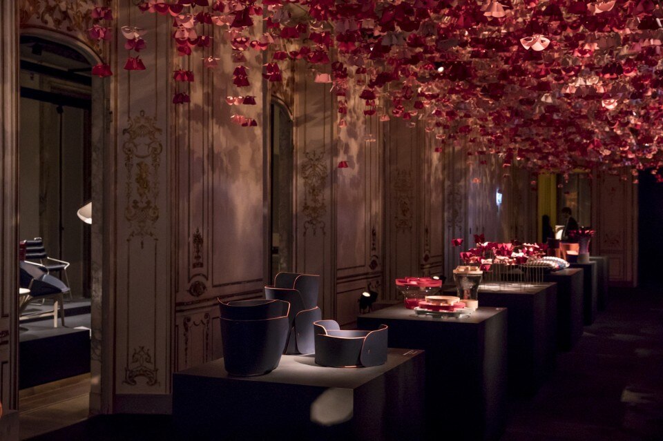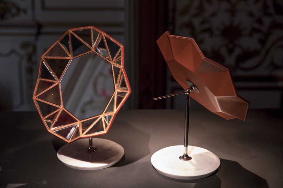 In fact, at Louis Vuitton – for the second year in the classic setting of Palazzo Bocconi – a cascade of flowers in multi-coloured paper welcomes guests: the perfect imitation of those in Napa leather proposed by Atelier Oï for the Origami flowers, the Rosace vases and trays and the Flower Field cushions, part of the first Les Petits Nomades collection: small objects made by major designers like Patricia Urquiola, the Campana brothers and Marcel Wanders that explore the multiple uses of leather, not only for deluxe accessories. Objects that join the well-known furniture collections Objets Nomades: among these, two new products like the Ribbon Dance by André Fu, made to evoke the movements of dancers with Asian ribbons; and Diamond Mirror by Marcel Wanders, where a central octagon and 25 triangular mirrors amaze visitors with their spectacular unstoppable reflections (the guests were many: during the weekend, over 100 people were waiting in line).