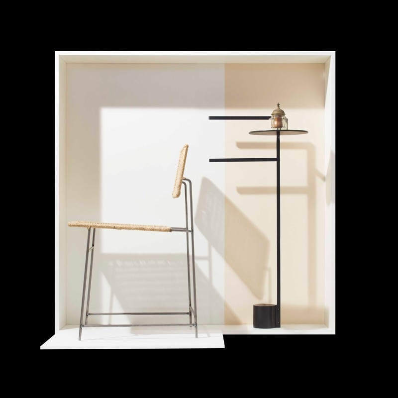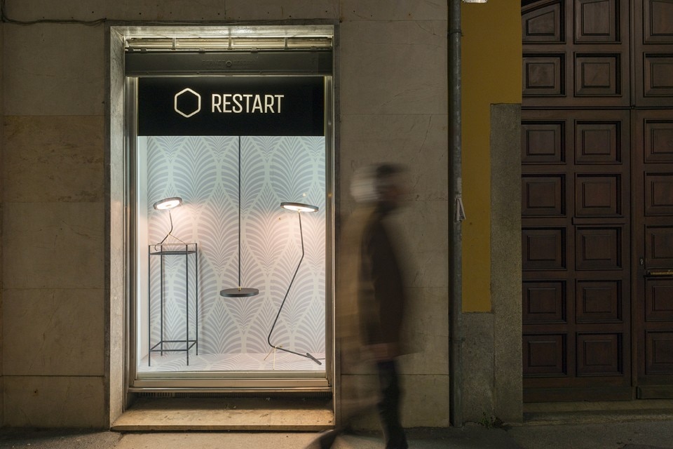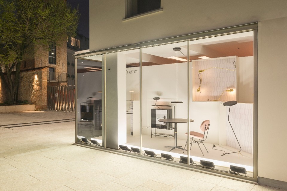 In the store windows on via Brisa 2, via Gorani 3, via San Sisto 9, via Manzoni 29 we find the characters of an emotional landscape, a series of objects reread by someone who knows them well and has assembled/disassembled them many a time. These are the Saliscendi table by Ignazio Gardella, redesigned by reconfiguring the height mechanism that determines its function; the Servomuto by Achille Castiglioni, developed once again through an aesthetic established by the simple gesture of a mechanical device; or the entire family of lamps that finds reference in the black and white photos of Jacques Fath: here we find the supple bodies of Alla and Victoire (Cristobal Balenciaga’s two favourite models) and of the immortal Bettina outlining the forms and colours of ideas.