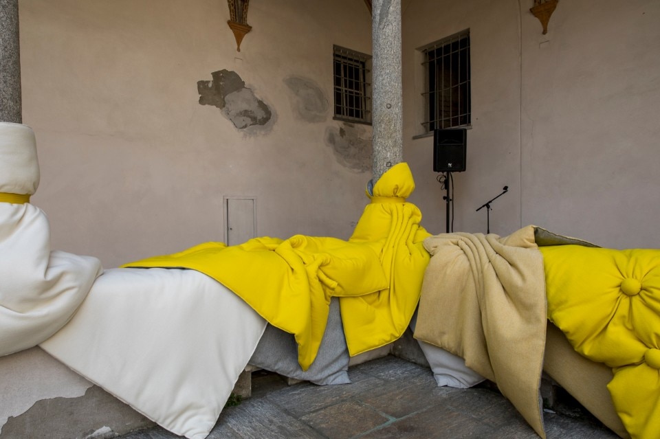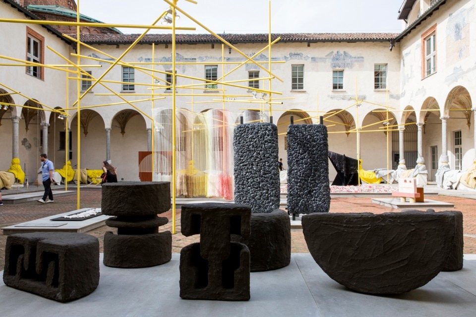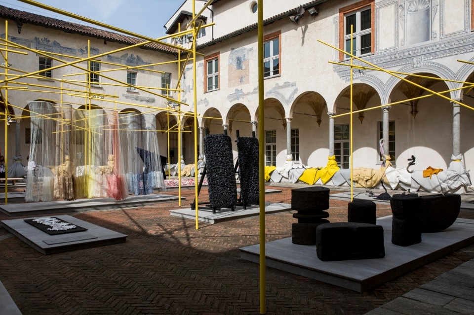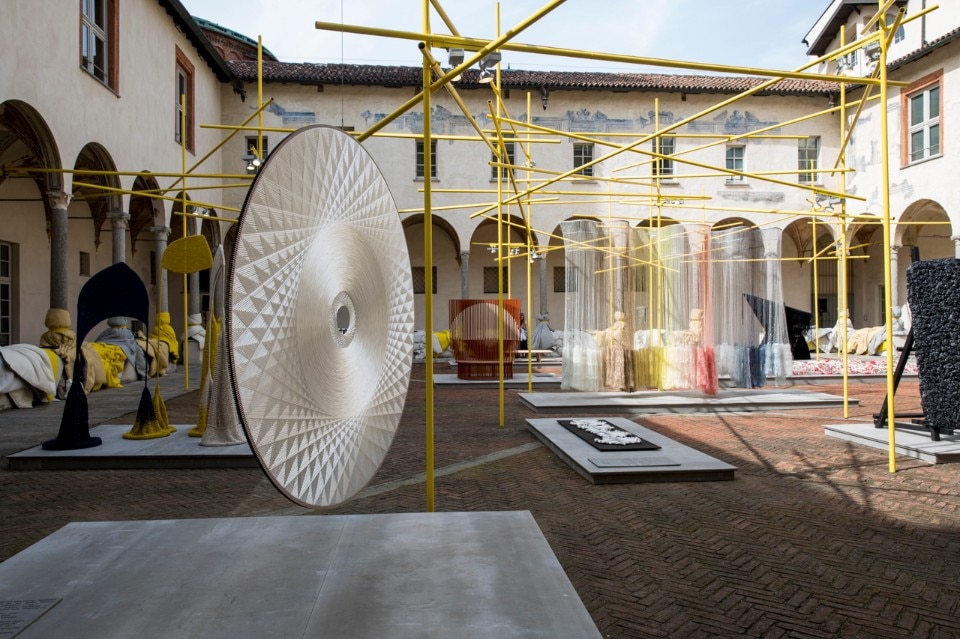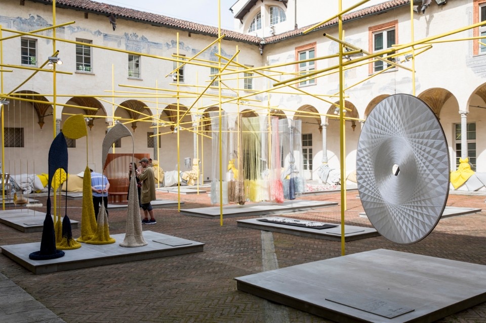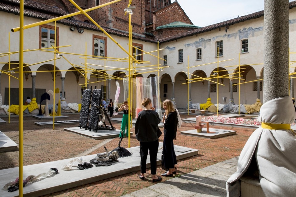 Among the numerous exhibitions in Milan – the first being held in 2008 in Zona Tortona– we remember the evocative installation for the 2015 Forisalone, in which GamFratesi covered the entire flooring of the Cloister with a mirror-like surface, and the installation last year, curated by Henrik Vibskov, was a labyrinth-like itinerary and overturned bells.